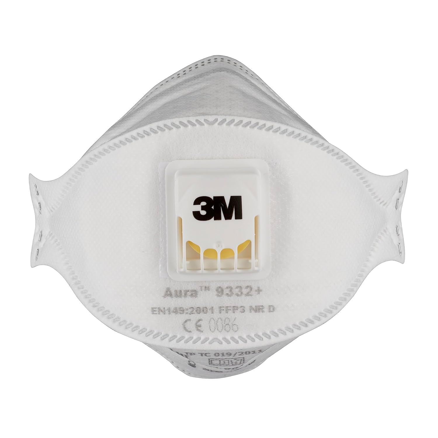 Die 3M Aura Atemschutzmaske 9332+ ist für anspruchsvolle Arbeiten mit hoher Staubbelastung ausgelegt und bietet Schutz nach FFP3. Das dreiteilige Aura Design unterstützt natürliche Gesichtsbewegungen beim Sprechen und sorgt für angenehmen Sitz. Das leistungsstarke Filtermaterial ermöglicht eine hohe Atemdurchlässigkeit für leichteres Atmen. Das 3M Cool Flow Ventil leitet ausgeatmete Luft ab und reduziert Wärmestau im Inneren der Maske. Ein anpassbarer Nasenbügel unterstützt eine dichte Passform im Bereich von Nase und Wangen. Die speziell geformte Nasenregion verbessert das Sichtfeld und die Kompatibilität mit Augenschutz. Das geprägte Oberteil hilft, das Beschlagen von Brillengläsern zu verringern. Geeignet für Anwendungen wie Reparaturarbeiten an Wänden, Decken und Böden sowie Dach und Wandisolierung. Entwickelt für Belastungen durch Feinstaub sowie Öl oder wasserbasierte Dämpfe, wie sie bei Hartholz, Dämmstoffen, Schimmel und Blei auftreten können. Farbkodierte Kopfbänder kennzeichnen die Schutzklasse, Rot steht für FFP3 gemäß EN 149 2001 plus A1 2009.