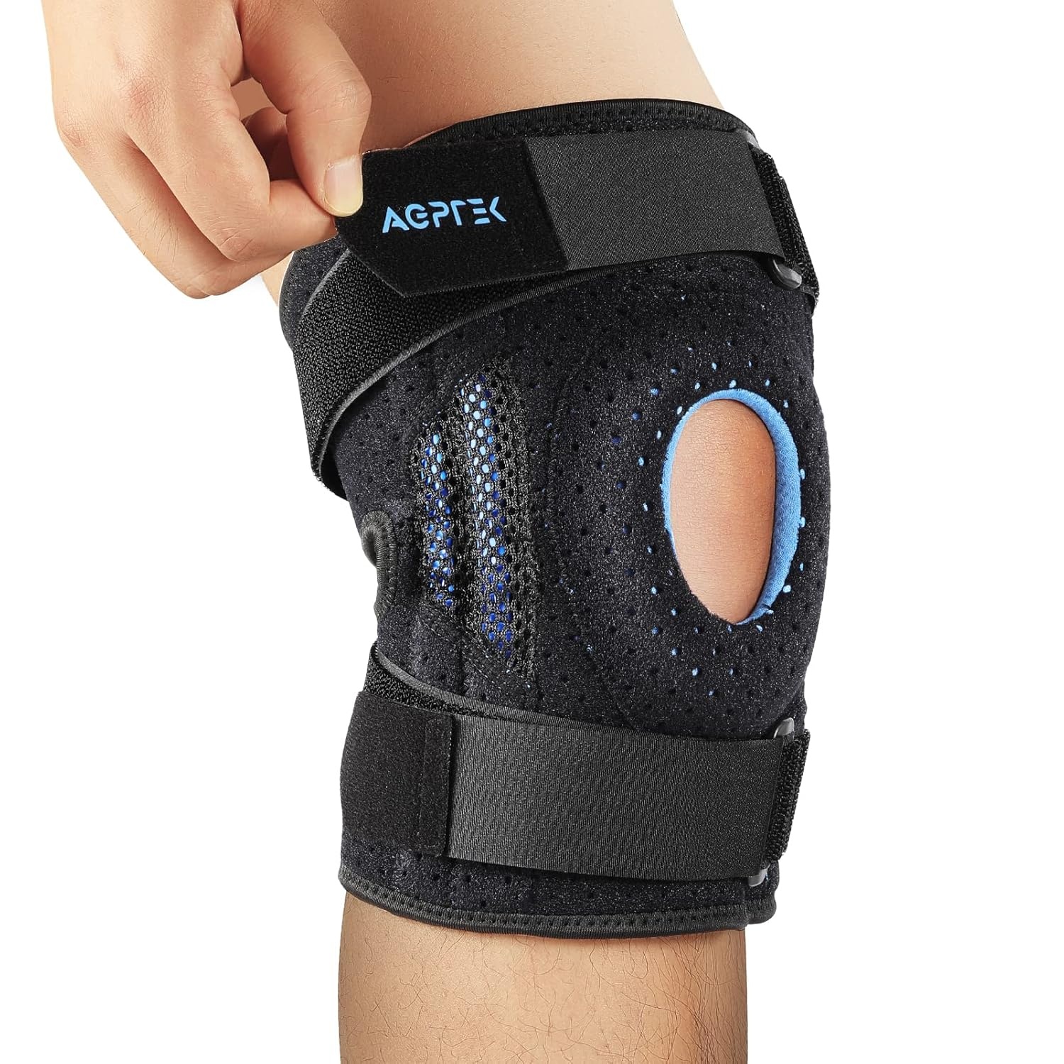 Die AGPTEK Kniebandage ist eine verstellbare Kniestütze zur Stabilisierung des Kniegelenks bei sportlichen Aktivitäten und im Alltag. Ein stoßdämpfendes Silikonpolster umschließt die Kniescheibe und unterstützt eine gleichmäßige Druckverteilung. Seitliche Stabilisatoren helfen, das Knie zu führen und die Bewegung zu unterstützen. Die offene Konstruktion entlastet bei Beugen und Strecken und kann das Tragegefühl verbessern. Zwei Klettverschlüsse ermöglichen eine individuelle Anpassung an die gewünschte Kompression. Atmungsaktives Netzgewebe und schweißabsorbierendes Material fördern ein angenehmes Klima am Knie. Der Bereich der Kniekehle ist offen gestaltet, um Wärmestau zu reduzieren. Geeignet für Joggen, Laufen, Wandern, Bergsteigen, Radfahren, Fußball, Badminton sowie Krafttraining mit Kurzhanteln und Körpergewicht. Die Bandage kann links oder rechts getragen werden und ist für Damen und Herren geeignet.