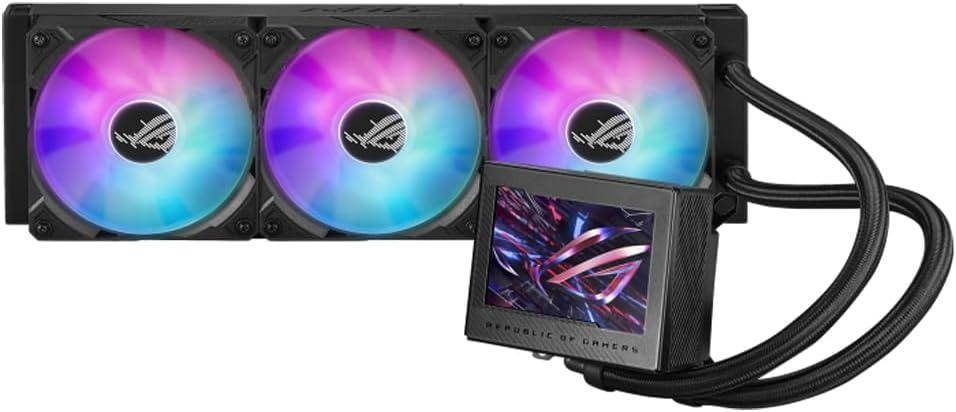 Der ASUS ROG Ryujin III 360 ARGB ist ein All in One Fluessig CPU Kuehler mit 360 mm Radiator fuer hohe Kuehlleistung in Gaming und Workstation Systemen. Ein 3,5 Zoll LCD Bildschirm ermoeglicht die Anzeige von Systeminformationen sowie individuell anpassbare Animationen. Die Asetek Pumpe der 8. Generation mit 3 Phasen Motor ist auf hohen Durchfluss, geringe Impedanz und reduzierte Geraeuschentwicklung ausgelegt. Ein integrierter Luefter im Pumpengehaeuse unterstuetzt die Kuehlung des VRM Bereichs durch optimierte Luftfuehrung. Drei 120 mm ROG ARGB Radiatorluefter mit magnetischer Daisy Chain Verbindung vereinfachen die Verkabelung und ermoeglichen abgestimmte Lichteffekte. Gen 2 Leuchtdioden sorgen fuer praezise und gleichmaessige ARGB Darstellung. Ueber Armoury Crate lassen sich Pumpen und Luefterdrehzahlen steuern und Inhalte fuer das LCD konfigurieren. Das System eignet sich fuer leistungsstarke Prozessoren und laesst sich optisch an ein ROG Setup anpassen. Eine einjaehrige AIDA 64 Lizenz zur erweiterten Systemueberwachung ist enthalten.