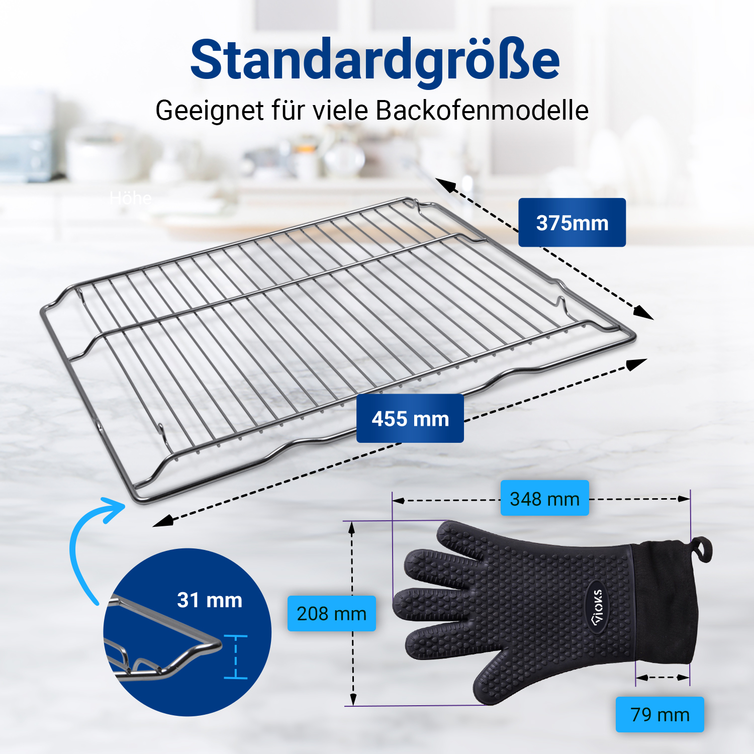 Backofenrost Set wie Bosch 00577170 Gitter + 2 Grillhandschuhe für Backofen