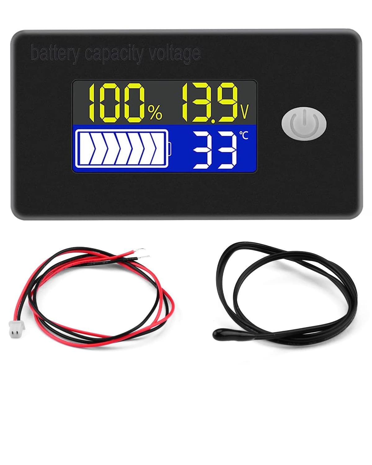 Dieses Batteriekapazitäts und Spannungsmessgerät dient zur Überwachung von Batteriesystemen und zeigt Batteriekapazität, Batteriespannung sowie die Temperatur an. Die Temperaturmessung erfolgt über einen externen Temperatursensor. Ein integrierter Summer ermöglicht Alarmmeldungen bei Unterspannung, Überspannung und Übertemperatur. Das Gerät unterstützt verschiedene Batteriespannungen und ist für unterschiedliche Batterietypen geeignet, darunter Blei Säure und Lithium Varianten. Die Anzeige kann zwischen Celsius und Fahrenheit umgeschaltet werden. Über Einstellmöglichkeiten lassen sich Batterietyp, Grenzwerte für den Batteriestand sowie Alarmschwellen anpassen. Zusätzlich ist eine Spannungskalibrierung möglich. Eine Schutzabdeckung unterstützt den Schutz vor Staub und Spritzwasser und hilft gegen Verpolung beim Anschluss. Geeignet für Anwendungen wie Wohnmobile, Golfwagen, Boote, Rasenmäher, Solarsysteme und weitere Fahrzeuge oder Anlagen mit Batteriespeicher.