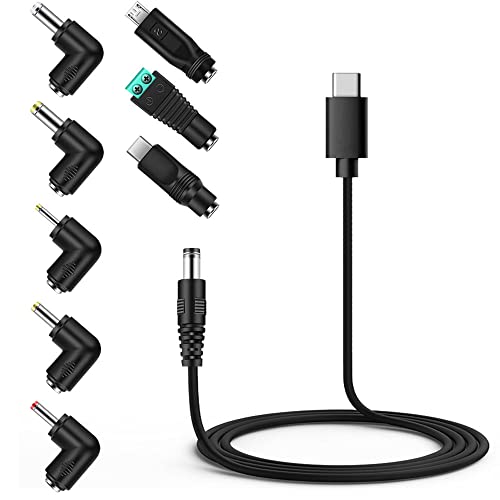 – ✅ USB-C-auf-DC-Stromkabel zum Versorgen von 5-V-Geräten, inklusive 8 austauschbaren Steckadaptern