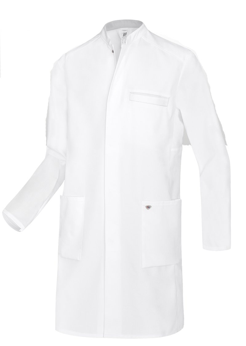 Der BP Med Coats Arztkittel für Herren ist ein funktionaler Berufsmantel für Praxis, Klinik und Pflege. Das Material besteht aus 48 Prozent Baumwolle, 48 Prozent Polyester und 4 Prozent Elastolefin und bietet eine angenehme Kombination aus Tragekomfort und Formstabilität. Der Stehkragen mit silberner Krageninnenseite unterstützt einen gepflegten Look und hilft, Verschmutzungen im Kragenbereich weniger sichtbar zu machen. Durchdachte Details wie Stretcheinsätze zum Hochkrempeln der Ärmel und ein Arm Lift System sorgen für gute Bewegungsfreiheit im Arbeitsalltag. Der Kittel verfügt über eine Brusttasche mit Paspel sowie zwei große Seitentaschen für wichtige Utensilien. Die verdeckte Druckknopfleiste ermöglicht ein schnelles An und Ausziehen und wirkt zugleich ordentlich. Ausführung in normaler Passform. Farbe weiß. Größe 50n.