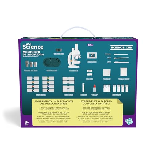 Das Canal Toys So Science Labormikroskop COS004 eröffnet eine faszinierende Welt kleinster Details und eignet sich ideal für erste wissenschaftliche Experimente zu Hause. Mit verschiedenen Okularen und einer Zusatzlinse sind hohe Vergrößerungen möglich, während das verstellbare Stativ eine bequeme Arbeitsposition unterstützt. Der integrierte RGB-Farbfilter hilft dabei, Kontraste zu verbessern und Strukturen besser sichtbar zu machen. Eine Aufbewahrungsbasis sorgt für Ordnung am Arbeitsplatz. Zum Set gehören unter anderem ein Silikon-Okular, 10-faches Okular, 20-faches Okular, Vergrößerungslinse, Reagenzglas, Pinzette, saugfähiges Papier, Wattestäbchen, 4 leere Objektträger, 8 vorbereitete Objektträger, Halter, Farbstoff 10 ml, Anleitung, Experimenttafel, Reagenzflaschen, ein stereoskopisches Mikroskop, 2 Petrischalen und ein Präpariermesser. Batteriebetrieb ist erforderlich, Batterien sind nicht enthalten.