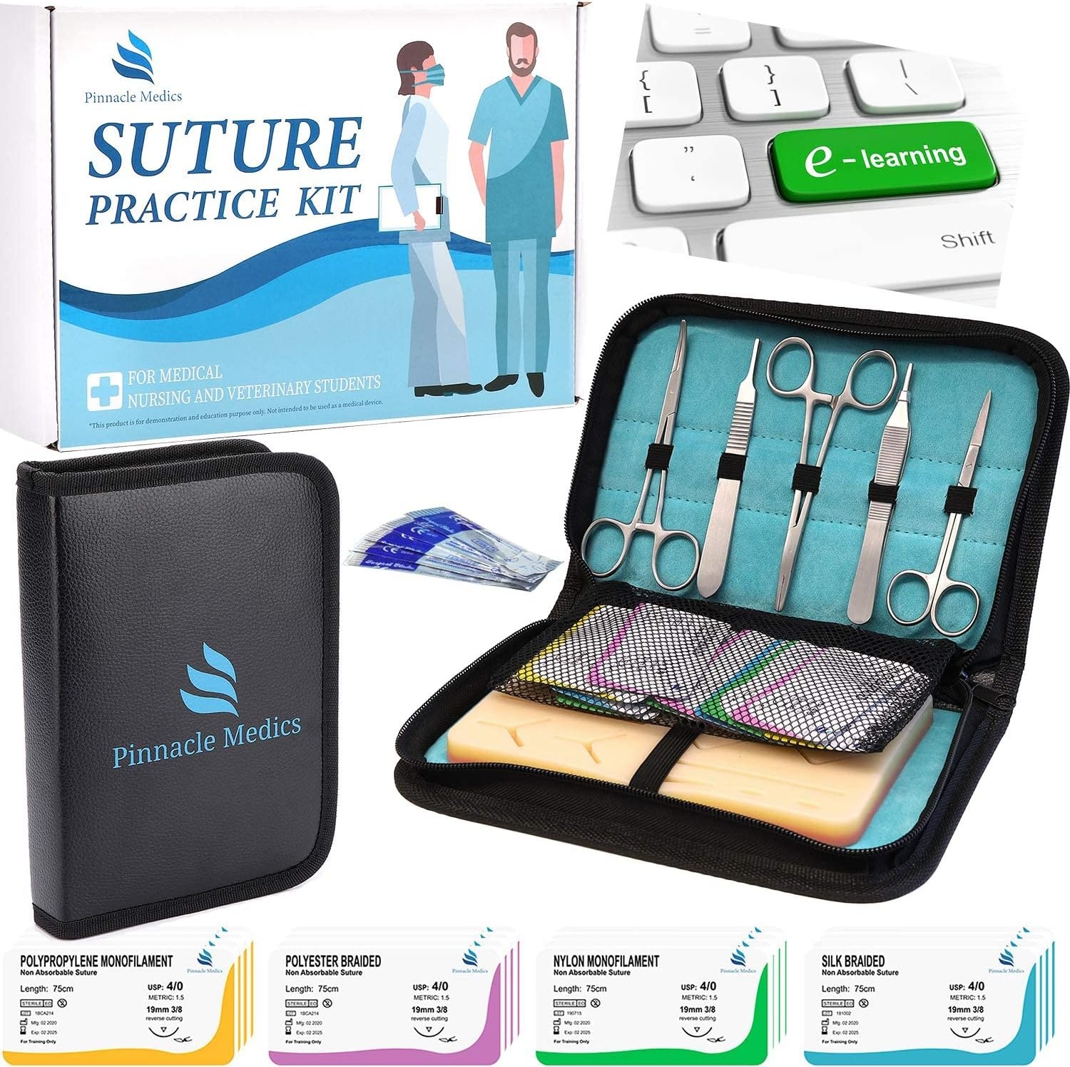– ✅ Naht-Übungsset mit Silikon-Nähkissen, Instrumenten und 24 Nahtfäden für realitätsnahes Training