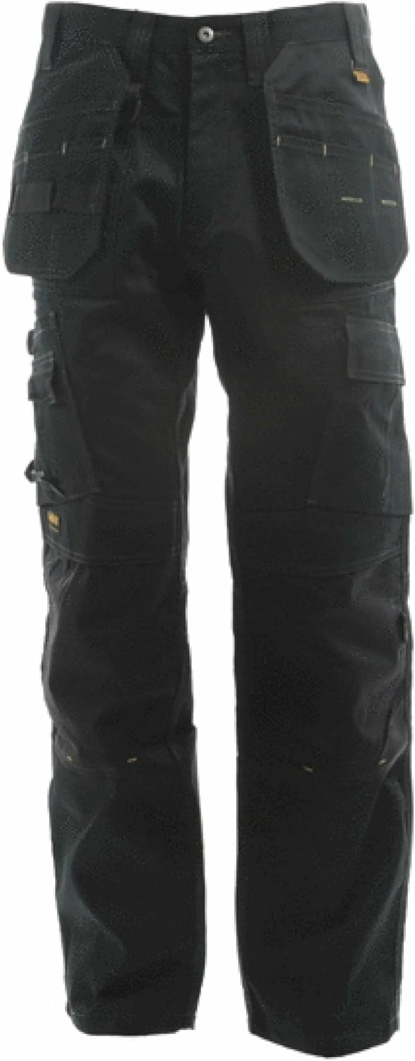 Die DeWalt Herren Arbeitshose Pro Tradesman ist für den Arbeitsalltag konzipiert und bietet eine robuste, zugleich leichte Polykotton-Qualität. Das Multi-Pocket-Design unterstützt eine übersichtliche Organisation von Werkzeugen und Kleinteilen. Holster-Taschen bieten schnellen Zugriff auf häufig genutztes Zubehör. Große Seitentaschen im Kampftaschen-Stil schaffen zusätzlichen Stauraum. Eine integrierte Hammerhalterung erleichtert das Mitführen von Werkzeugen. Cordura-Knietaschen sind für erhöhte Strapazierfähigkeit und Komfort im Kniebereich ausgelegt. Die Passform ist auf Bewegungsfreiheit bei handwerklichen Tätigkeiten abgestimmt. Farbe Schwarz für einen unempfindlichen, arbeitsgerechten Look. Größe 42W x 29L.