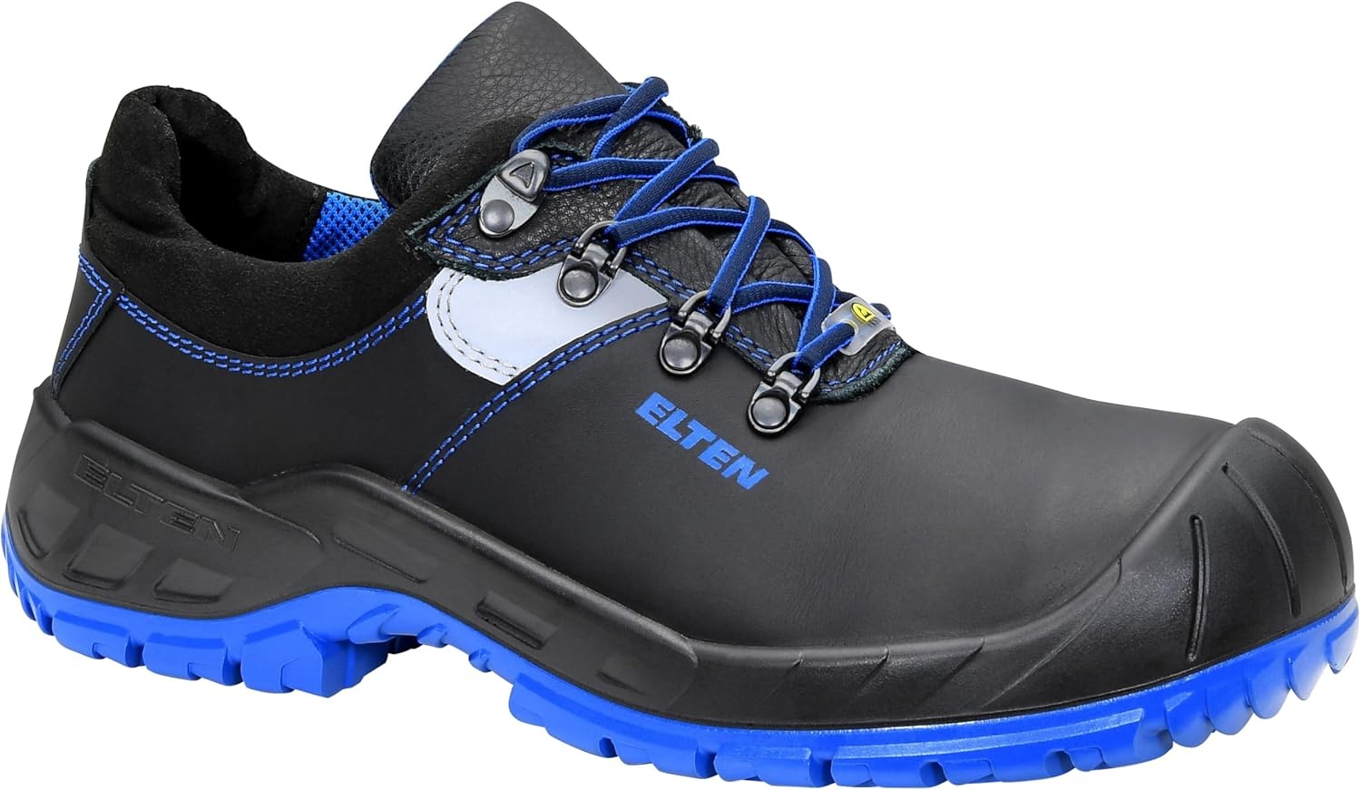 Die ELTEN Sicherheitsschuhe Alessio XW Low ESD S3S sind robuste Sicherheitshalbschuhe für den Arbeitsalltag und bieten zuverlässigen Schutz bei gleichzeitig hohem Tragekomfort. Das Obermaterial aus Rindleder ist strapazierfähig und langlebig. Eine Stahlkappe schützt die Zehen vor Stoß- und Druckeinwirkung. Das atmungsaktive Textilfutter unterstützt ein angenehmes Fußklima. Die geschlossene, gepolsterte Lasche verbessert den Sitz und reduziert Druckstellen. Die ganzflächige Einlegesohle ESD PRO black unterstützt die ESD-Eigenschaften und den Komfort. Die grobstollige PU PU Laufsohle SAFETY GRIP sorgt für sicheren Stand und gute Traktion. Die Schuhe sind nach EN ISO 20345 2022 S3S zertifiziert. Zusätzlich sind Eigenschaften wie Kraftstoffbeständigkeit, Rutschhemmung, Zehenschutz und Leitergriffigkeit für den professionellen Einsatz ausgelegt.