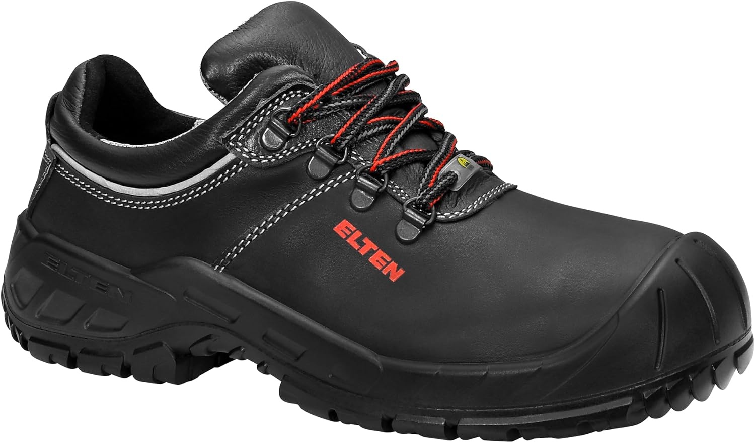 Die ELTEN Sicherheitsschuhe Renzo Low ESD S3 sind für harte Einsätze in Bau, Handwerk und Industrie ausgelegt und verbinden Schutz, Stabilität und Komfort. Das robuste Glattleder aus Rind sorgt für Langlebigkeit im Arbeitsalltag. Eine ergonomisch geformte Stahlkappe schützt die Zehen zuverlässig vor Stoß- und Druckeinwirkung. Die Stahlzwischensohle bietet wirksamen Durchtrittschutz gegen spitze Gegenstände von unten. Eine strapazierfähige PU-Überkappe erhöht die Widerstandsfähigkeit im Zehenbereich. Die dämpfende PU-Zwischenschicht unterstützt eine hohe Energieaufnahme und entlastet die Füße bei langem Stehen und Gehen. Die rutschhemmende Laufsohle mit SafetyGrip-Profil ist für anspruchsvolle Untergründe ausgelegt. Die ESD-Ausstattung macht den Schuh geeignet für elektronisch sensible Arbeitsbereiche. Durch die Zertifizierung gemäß DGUV Regel 121-119 ist der Schuh für individuelle orthopädische Anpassungen zugelassen. Geeignet für Einsatzbereiche wie Outdoor, Hochbau, Tiefbau, Garten- und Landschaftsbau sowie industrielle Umgebungen.