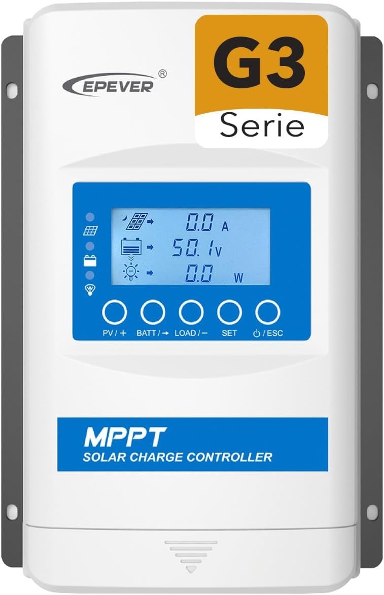 Der EPEVER XTRA 3210N aus der XTRA N G3 Serie ist ein MPPT Solarladeregler zur effizienten Nutzung der Solarleistung in 12 V und 24 V Anlagen mit automatischer Systemerkennung. Er unterstützt einen Ladestrom bis 30 A und eignet sich für Solarmodule mit einer maximalen PV Leerlaufspannung von 100 V. Die Nennladeleistung beträgt bis zu 390 W bei 12 V sowie bis zu 780 W bei 24 V. Der Regler bietet eine unabhängige Spannungsregelung, sodass geeignete Lasten auch direkt betrieben werden können. Unterstützt werden Blei Säure Batterien wie AGM, Gel, Nass und benutzerdefinierte Profile sowie Lithiumbatterien bei entsprechender Parametrierung. Umfangreiche Schutzfunktionen sind integriert, darunter Schutz vor Verpolung, Kurzschluss, Überstrom, Über und Unterspannung, Überladung, Tiefentladung, Überlast und Überhitzung. Der Eigenverbrauch ist niedrig und der Betrieb erfolgt geräuschlos. Das Gerät ist für den Einsatz in Wohnmobilen, Inselanlagen und Outdoor Anwendungen geeignet. Der Temperaturbereich liegt bei minus 25 Grad bis plus 45 Grad und die Schutzart ist IP33. Abmessungen sind 230 x 165 x 63 mm bei einem Gewicht von 1,31 kg.
