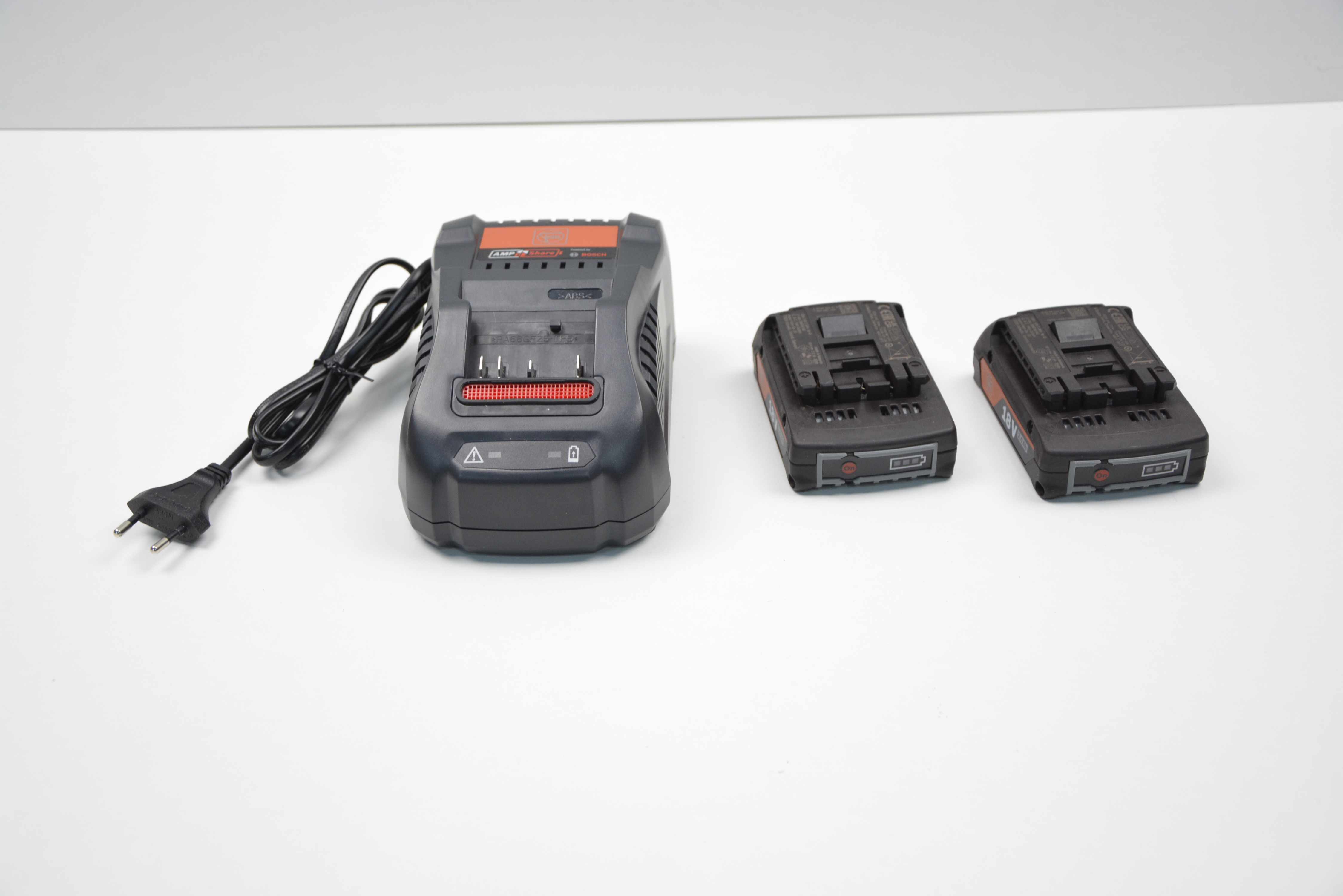 – ✅ Starterset mit zwei 18 V Li Ionen Akkus mit 2,0 Ah und Schnellladegerät für AMPShare und Bosch Professional 18 V