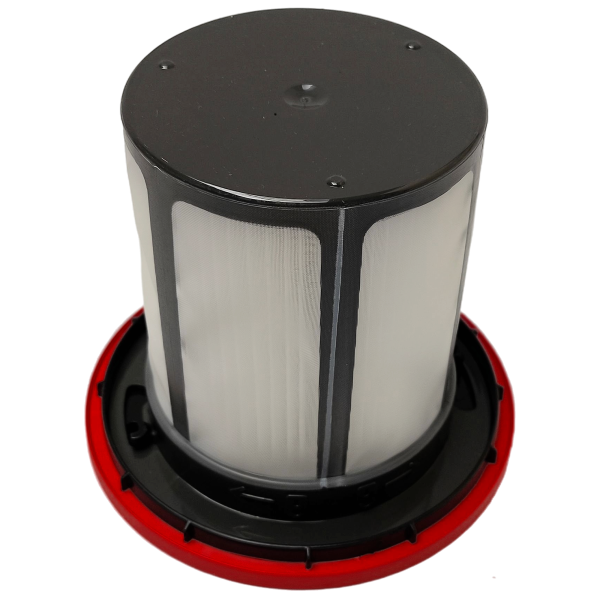Dieser runde weiße Filter mit außenliegendem Kunststoffilter ist z.B. in der Staubbox 12029996 im kabellosen Handstaubsauger eingesetzt.