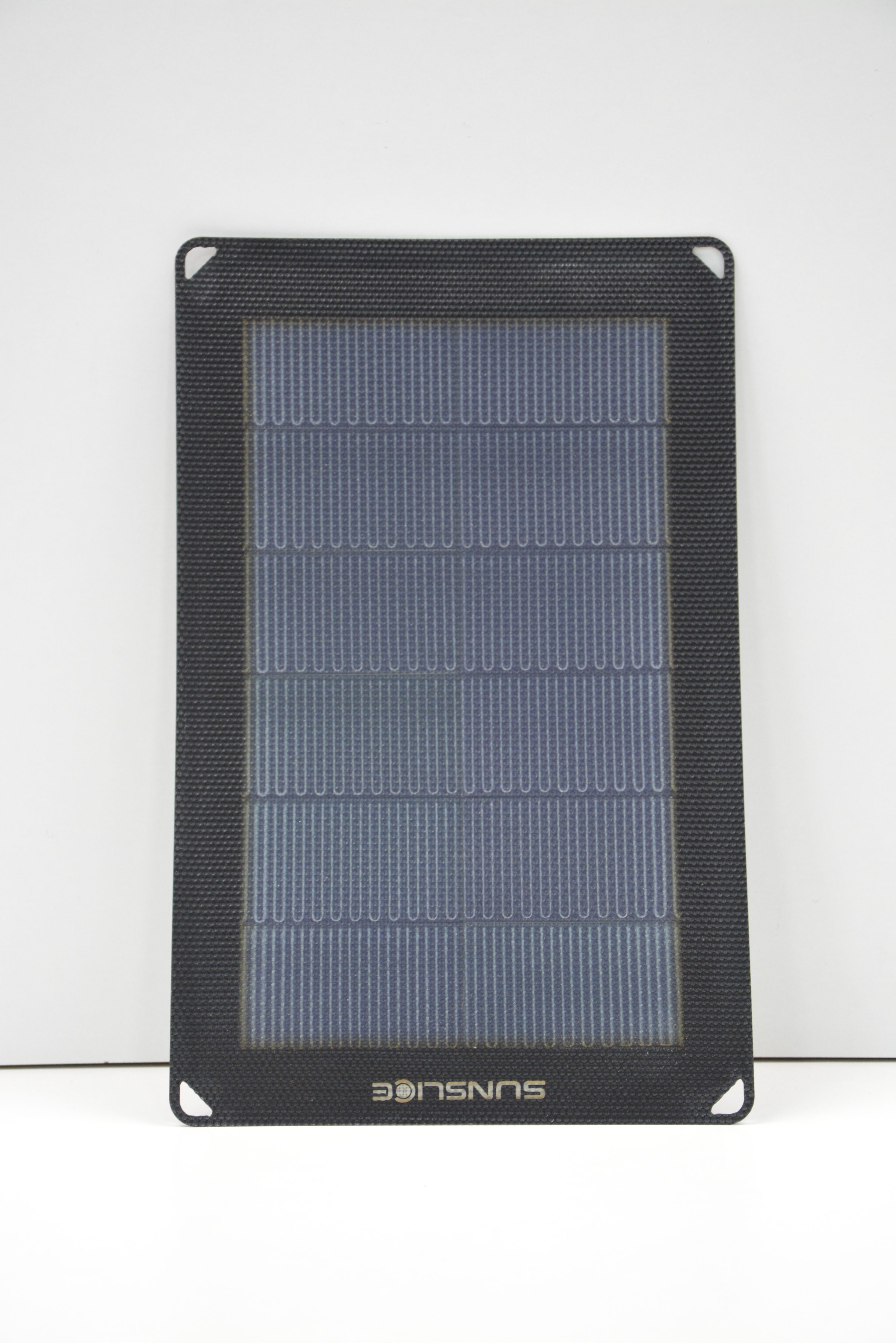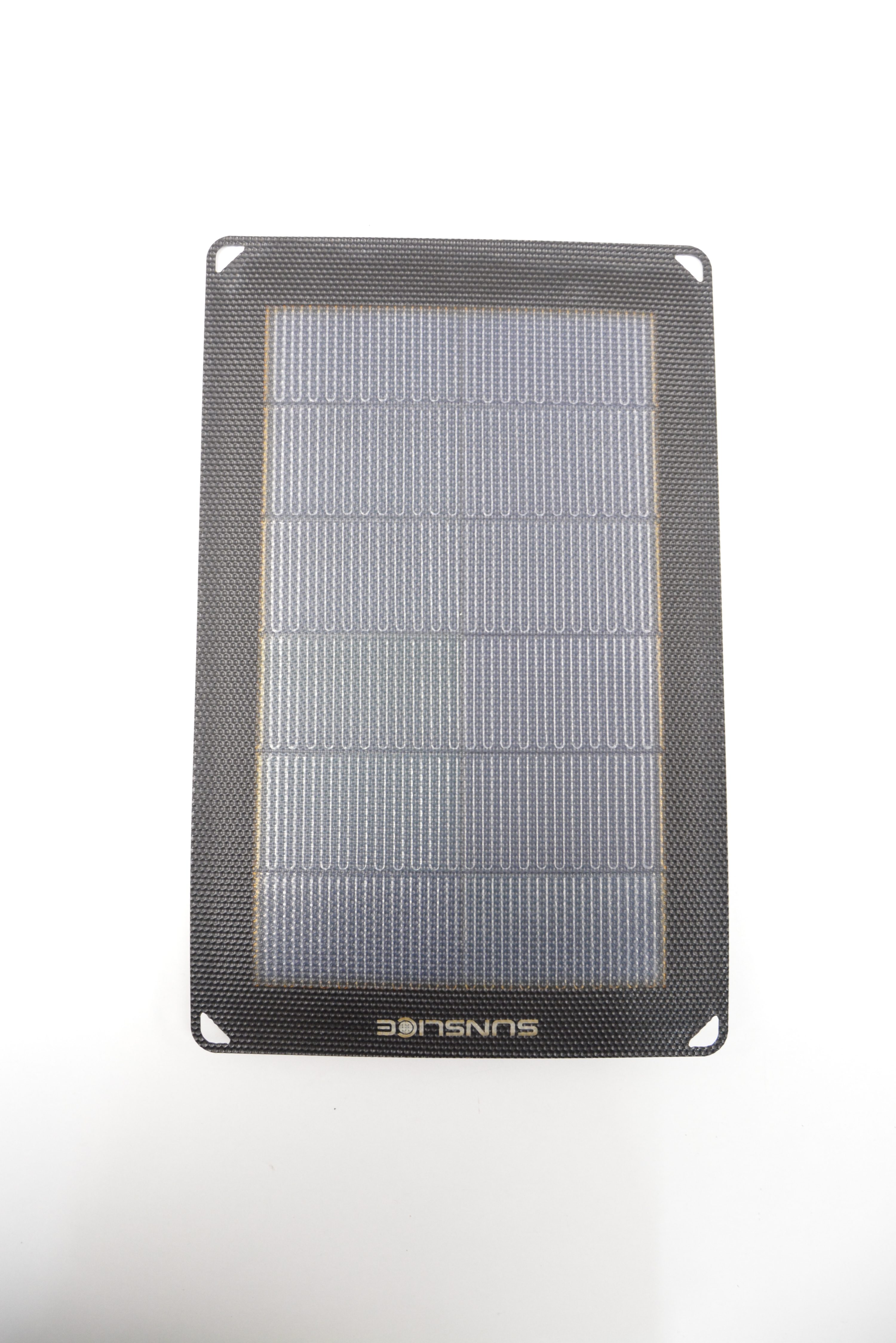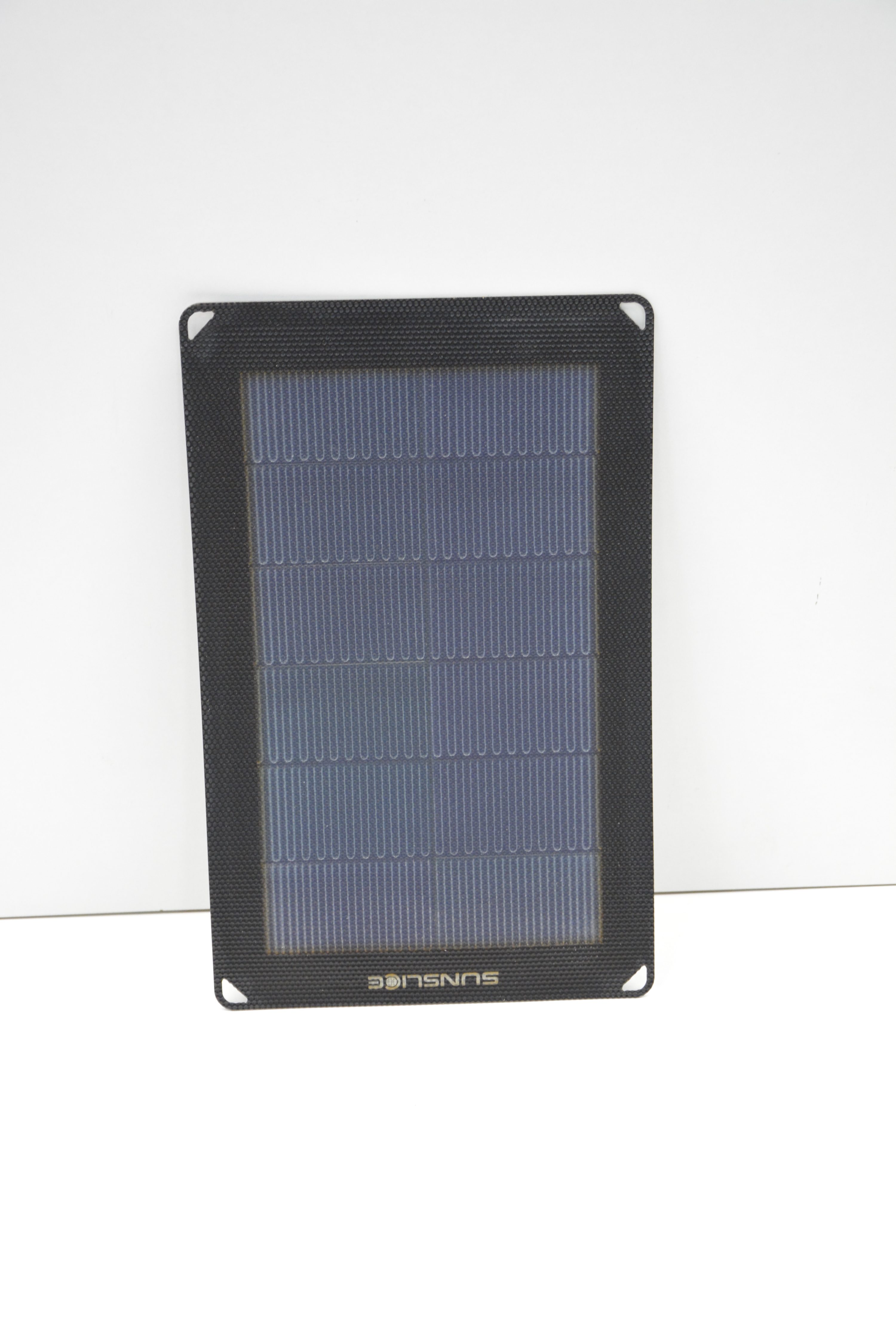 Dieses flexible Solarladegeraet fuer Outdoor und Camping nutzt hocheffiziente CIGS Solarzellen zur Umwandlung von Sonnenenergie in Strom. Die flexible Bauweise erleichtert das Verstauen und den Einsatz unterwegs. Ein interner Chip sorgt fuer eine konstante Ladeleistung bei wechselnden Lichtverhaeltnissen. Ueber den integrierten USB Anschluss koennen kompatible USB Geraete wie Smartphones oder Tablets geladen werden. Es kann ein Geraet gleichzeitig geladen werden. Die maximale Ausgangsleistung betraegt 5 V bei bis zu 1,2 A. Das Solarmodul ist wasserresistent und kratzfest und damit fuer den Einsatz im Freien geeignet. Durch das geringe Gewicht von 140 g ist es ideal fuer Rucksacktouren. Das Format betraegt 290 x 190 x 1 mm und ist damit kompakt und leicht zu transportieren. Die Solarzellen erreichen eine Umwandlungseffizienz von bis zu 16,5 Prozent. Bei gutem Sonnenlicht ist eine vollstaendige Ladung eines Telefons in etwa 4 Stunden moeglich, abhaengig von Geraet und Einstrahlung.