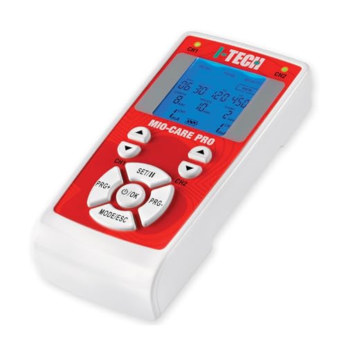 Der GIMA I-Tech Mio-Care PRO ist ein Elektrotherapiegerät zur Anwendung von TENS und NEMS für Schmerztherapie und Muskelstimulation. Das Gerät arbeitet mit zwei unabhängig regelbaren Kanälen und ermöglicht den Anschluss von bis zu 8 Elektroden. Es bietet insgesamt 50 Programme, darunter 14 medizinische Programme, 15 Programme für Schönheitsanwendungen und 21 Fitnessprogramme. Zusätzlich stehen 13 freie Speicherplätze zur individuellen Programmablage zur Verfügung. Der biphasische, kompensierte Rechteckimpuls ist auf eine gleichmäßige Stromabgabe ausgelegt. Ein Grafikdisplay zeigt das laufende Programm sowie die verbleibende Zeit an. Die Bedienung erfolgt über eine digitale Tastatur mit klaren, intuitiven Befehlen. Das Gerät ist als Medizinprodukt der Klasse IIa mit CE0068 gekennzeichnet. Ein interner wiederaufladbarer Ni-MH-Akku ist vorgesehen, die Nutzung erfolgt ohne den Bedarf an Einwegbatterien. Geeignet für Anwender, die ein kompaktes Gerät mit umfangreichen Programmen und Kanalsteuerung suchen.