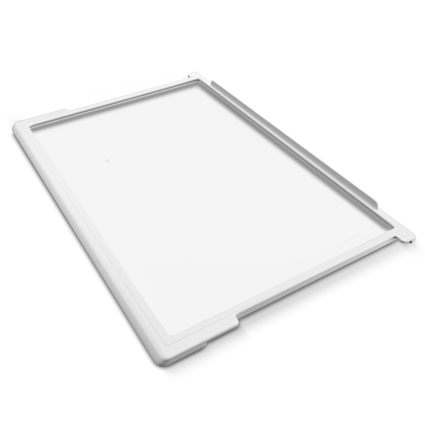 Dieser Abstellboden mit weißem Rahmen ist meist 3 x in Kühl-Gefrier-Kombinationen und meist 2 oder 4 x in Kühlschränken eingeschoben.