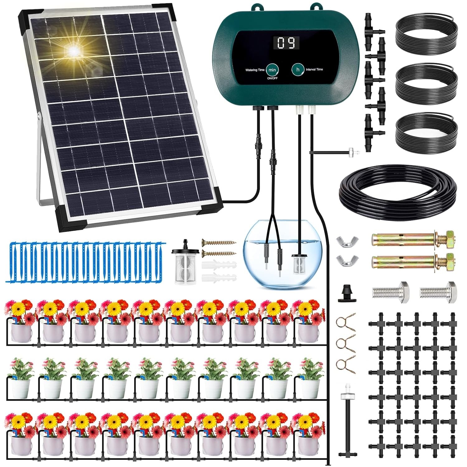 – ✅ Solarbetriebenes Tropfbewaesserungssystem mit Timer zur automatischen Versorgung von bis zu 30 Topfpflanzen