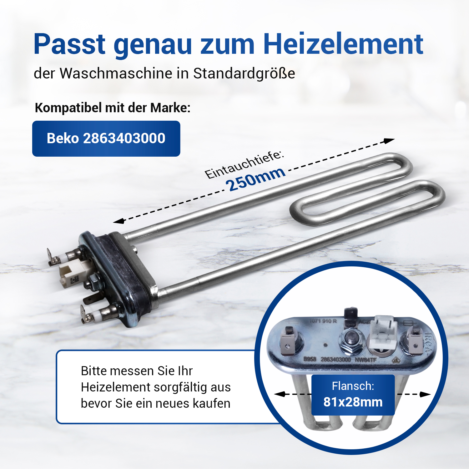 Heizelement wie Beko 2863403000 230V 1950W für Waschmaschine