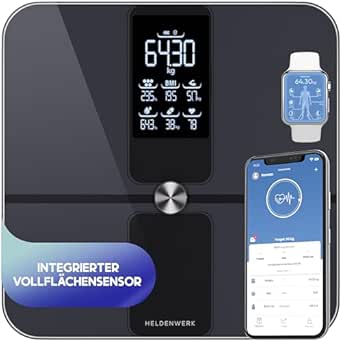 HELDENWERK Körperfettwaage Bluetooth mit App Vollflächensensor 180 kg
