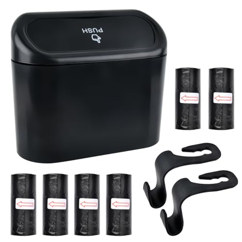 – ✅ Kompakter Auto-Mülleimer mit Deckel inklusive 90 Müllbeuteln und 2 Haken für eine saubere Fahrzeugkabine