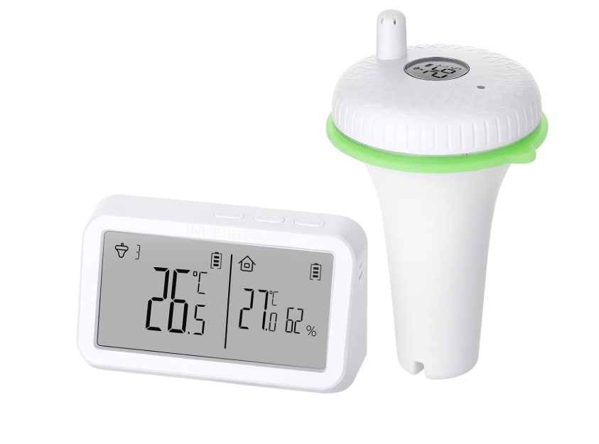 Das INKBIRD schwimmende Poolthermometer IBS-P02R im Kombinationsset mit dem IBS-M2 WLAN Gateway ermöglicht die komfortable Temperaturkontrolle per App. Das Gateway kann bis zu 9 kompatible Poolthermometer gleichzeitig verwalten und unterstützt damit mehrere Messorte. In der App lassen sich aktuelle Messwerte sowie Maximalwert, Minimalwert und Durchschnitt je Thermometer übersichtlich anzeigen. Zusätzlich kann der Temperaturverlauf langfristig gespeichert und ausgewertet werden. Das Gateway verfügt über ein Display zur Anzeige von Innentemperatur und Luftfeuchtigkeit. Das Poolthermometer ist für den Einsatz im Wasser ausgelegt und besitzt einen wasserdichten Schutz nach IPX7. Ein Silikondichtring unterstützt den Schutz vor eindringendem Wasser und erhöht die Widerstandsfähigkeit im Alltag. Der Sensor arbeitet mit einer Messgenauigkeit von etwa ±1 Grad Celsius für verlässliche Ablesungen. Für mehr Sicherheit lassen sich in der App Temperaturgrenzen festlegen, bei deren Über- oder Unterschreitung ein Alarm ausgelöst wird. Geeignet für Schwimmbad, Whirlpool, Spa, Fischteich oder Aquarium zur Kontrolle der Wassertemperatur.