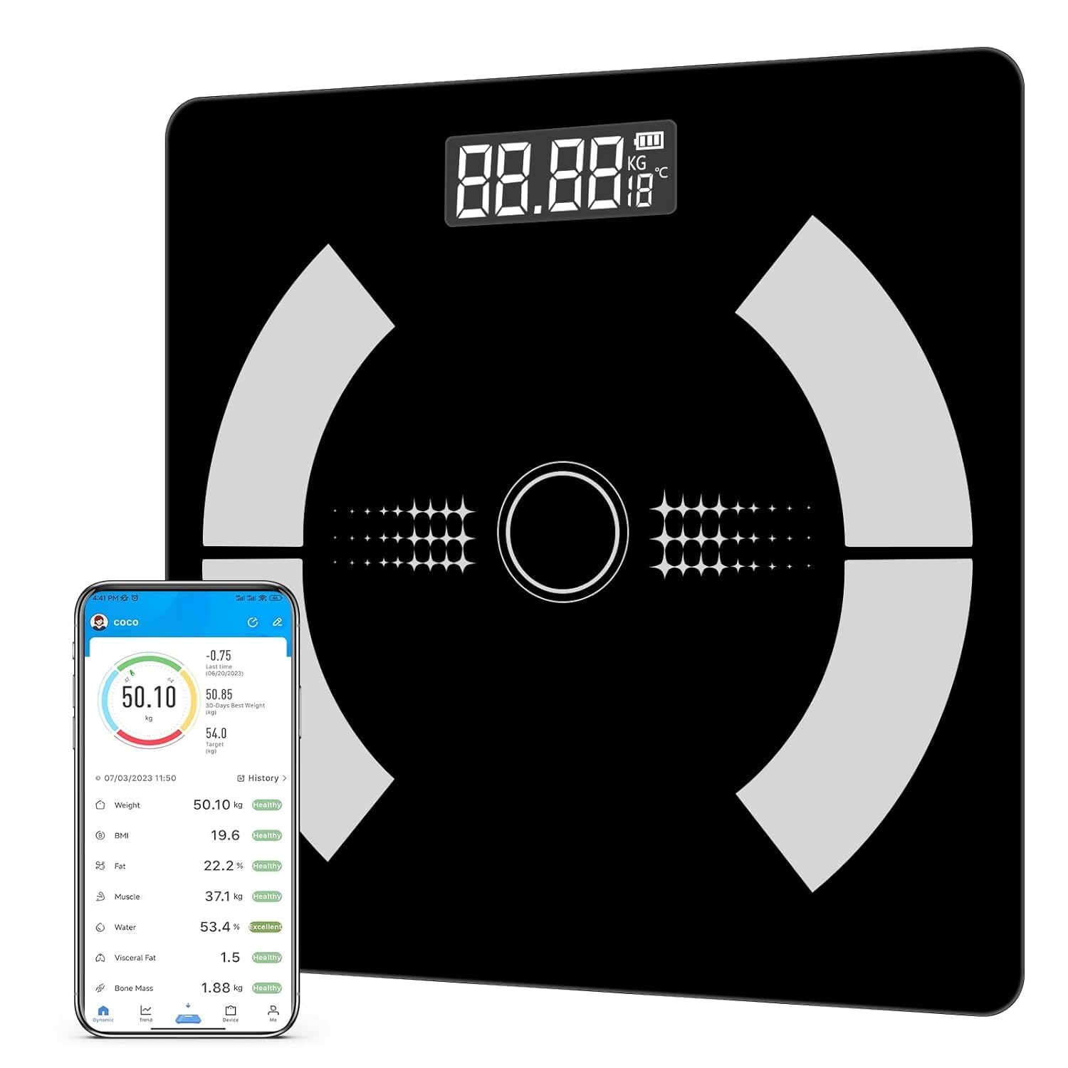 – ✅ Digitale Körperfettwaage mit Bluetooth und App zur Analyse von Gewicht und Körperzusammensetzung