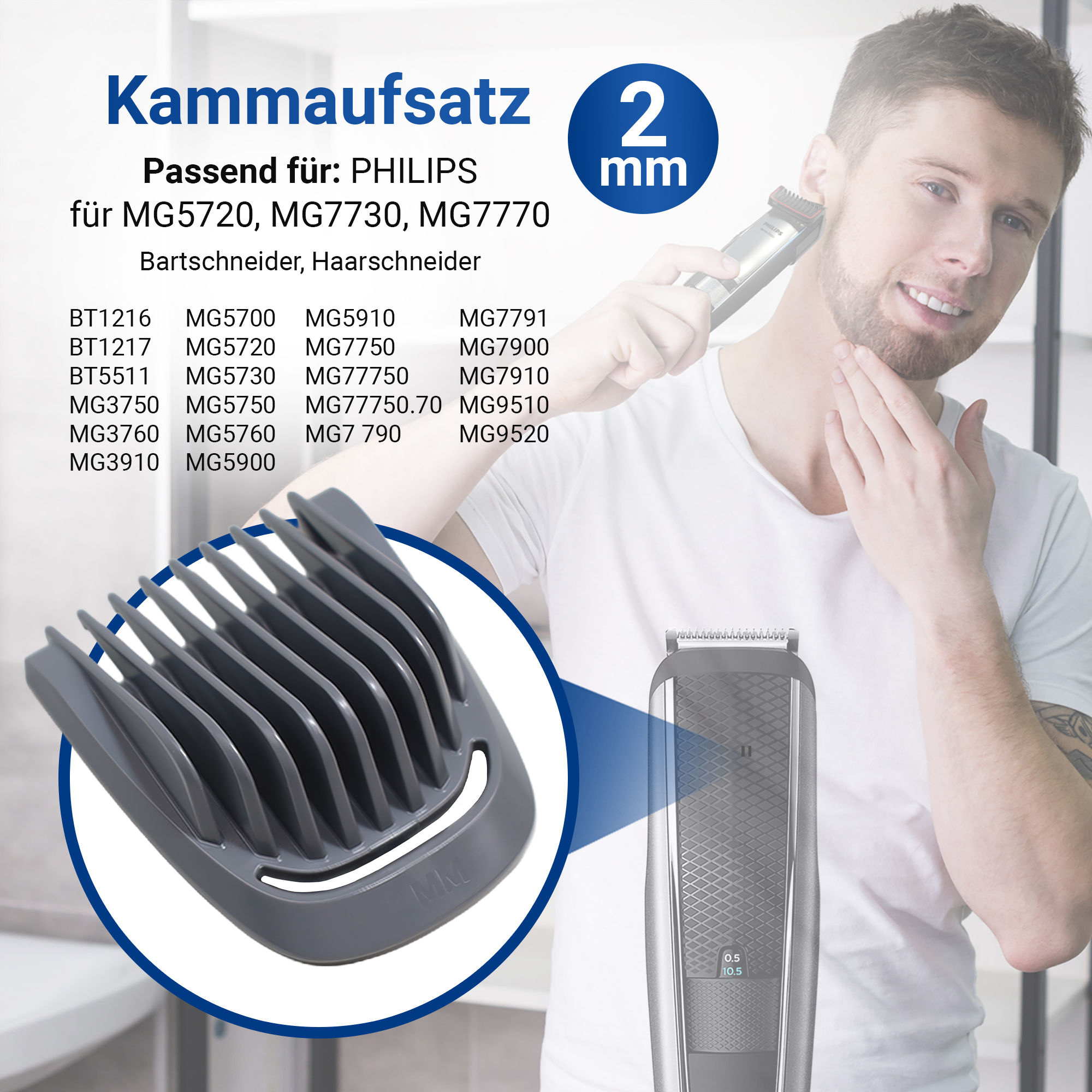 Startseite Körperpflege Haarschneider Kammaufsatz Kammaufsatz 2mm Philiрs 422203632351 Aufsteckkamm für Bartschneider