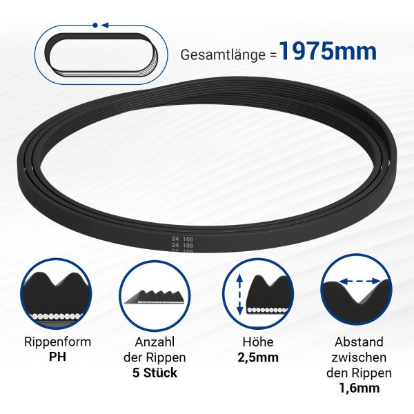Keilrippenriemen 1975PH5 wie Zanussi 379011200/1 Antriebsriemen für Trockner