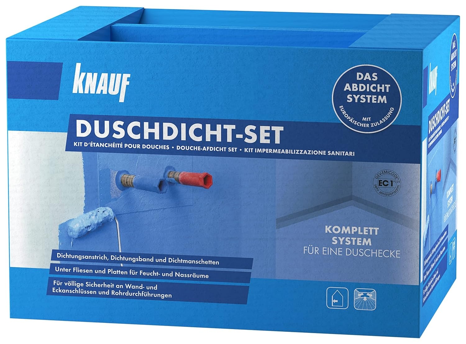 Das Knauf Duschdicht Set ist ein praktisches Abdichtungssystem zur zuverlässigen Abdichtung im Duschbereich und eignet sich für eine Fläche von bis zu 4 Quadratmetern. Das System ist flexibel und rissüberbrückend bis 2 Millimeter, wodurch es auch bei später auftretenden Untergrundrissen zusätzliche Sicherheit bietet. Es haftet sehr gut auf vielen gängigen Untergründen wie Beton, Kalk, Zement, Gipsputz, Mauerwerk und Holz. Die Abdichtung ist wasserdicht und dauerelastisch ausgelegt und bleibt dabei silikonverträglich. Durch die hohe Flexibilität ist das Set auch für Anwendungen mit Bodenheizung und Wandheizung geeignet. Enthalten sind ein Dichtungsanstrich, ein Abdichtungsband sowie eine Abdichtungsmanschette zur sicheren Ausführung von Anschlüssen und Übergängen. Das Set ist für den Einsatz im Sanitärbereich konzipiert und unterstützt eine saubere, systematische Verarbeitung. Hinweis zu Inhaltsstoffen: Enthält Isothiazolinone und kann allergische Reaktionen hervorrufen.