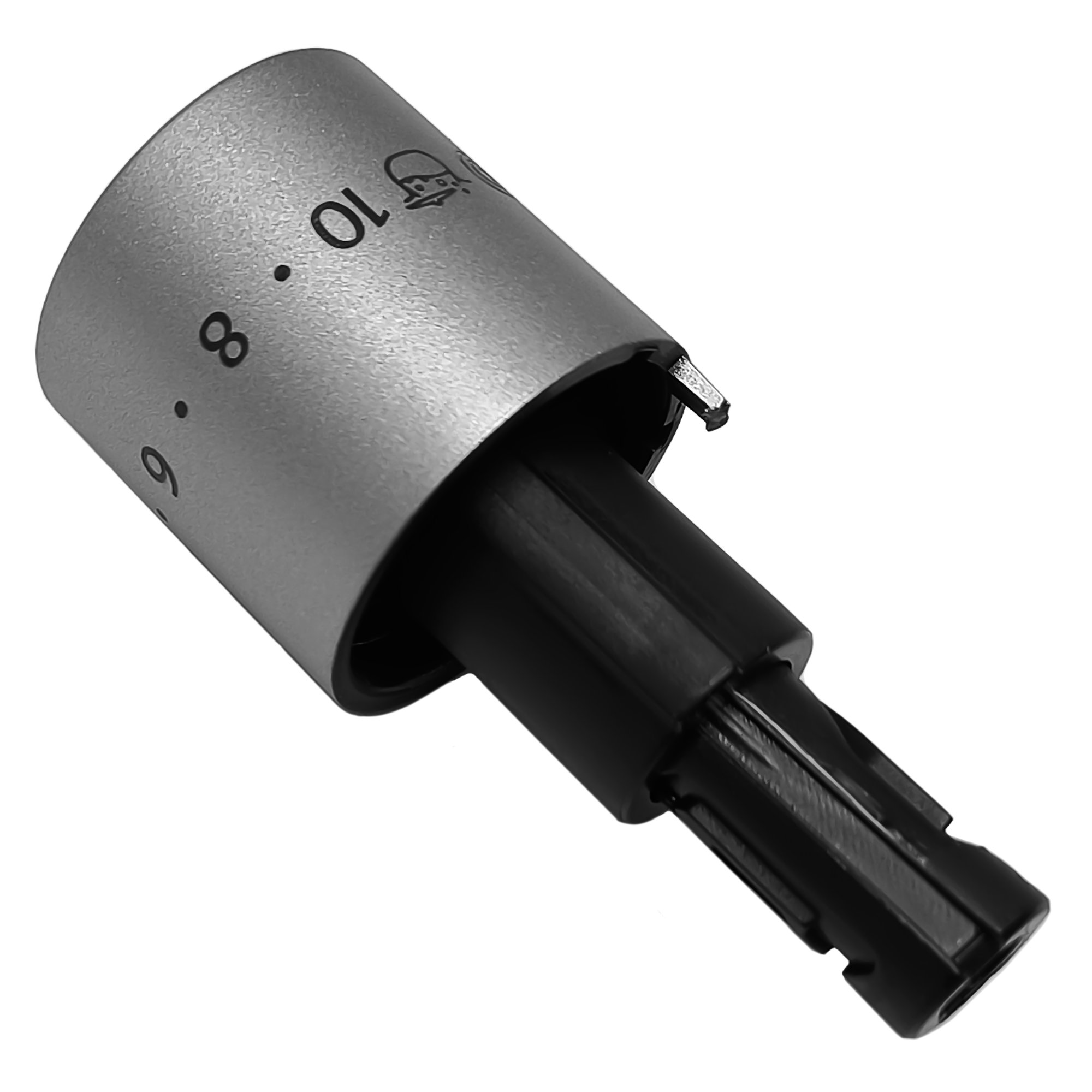 Meist sind 2 dieser Knebel jeweils rechts und links außen in der Frontblende eingesetzt. Achsabflachung gegenüber Nullstellung.
