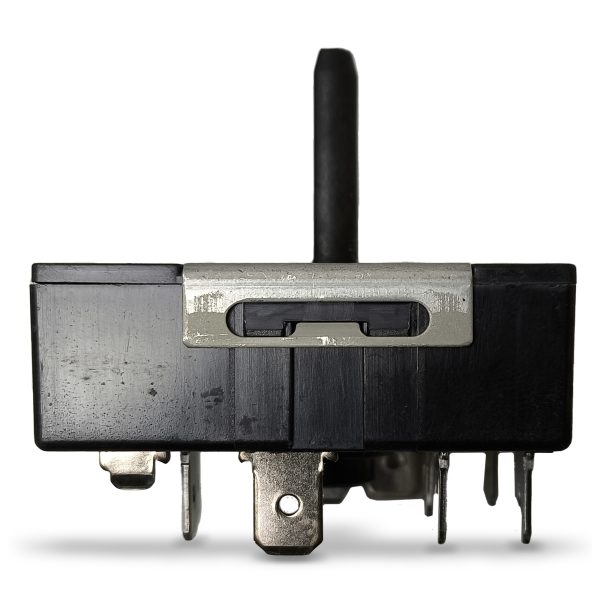 Dieser Energieregler sitzt unter einem der Knebel (Drehgriffe) am Bedienfeld. Er regelt, wie viel Strom die Kochplatte erreicht und damit, wie heiß diese wird.