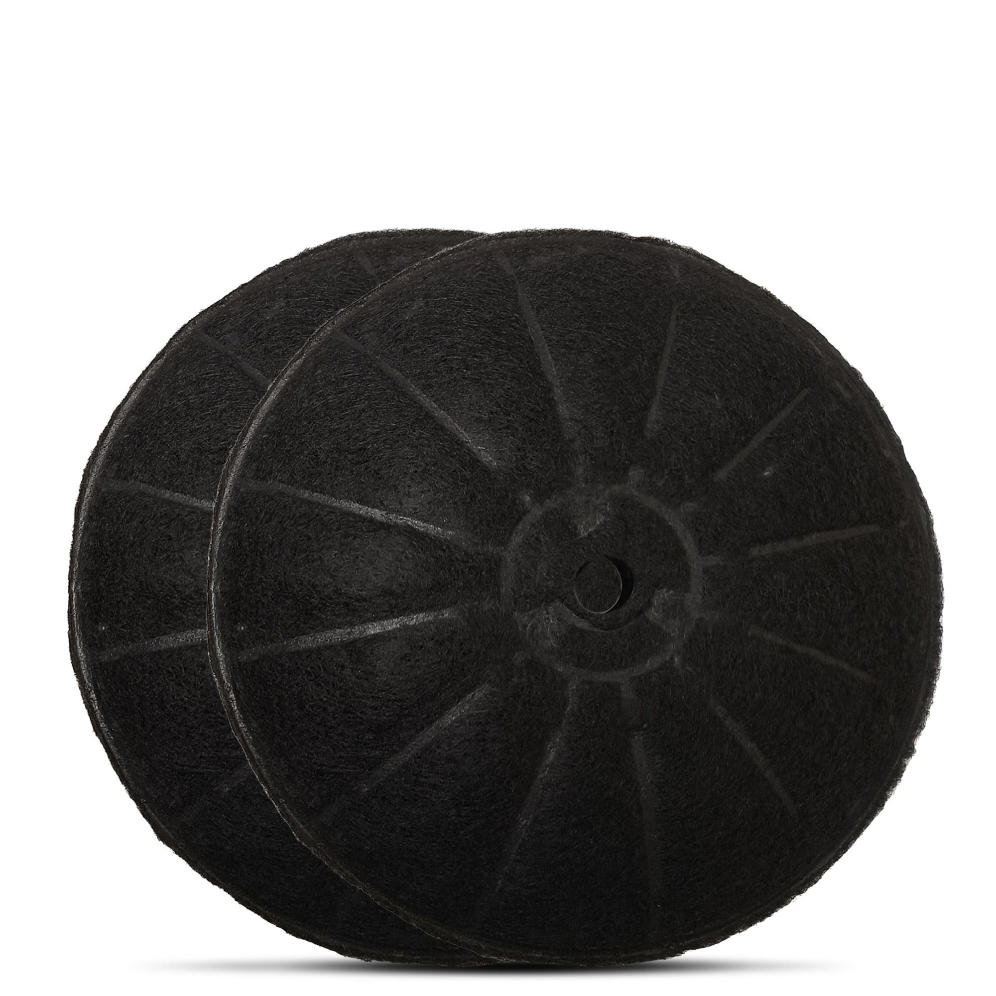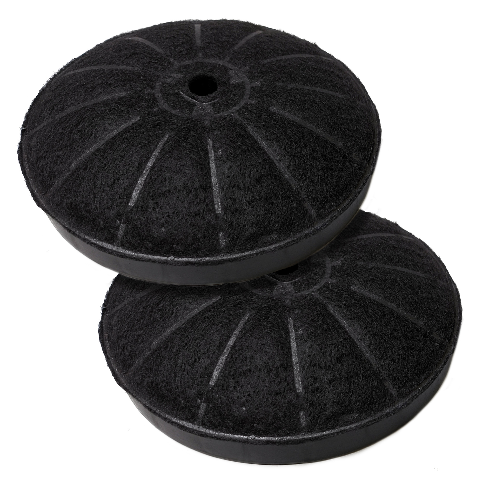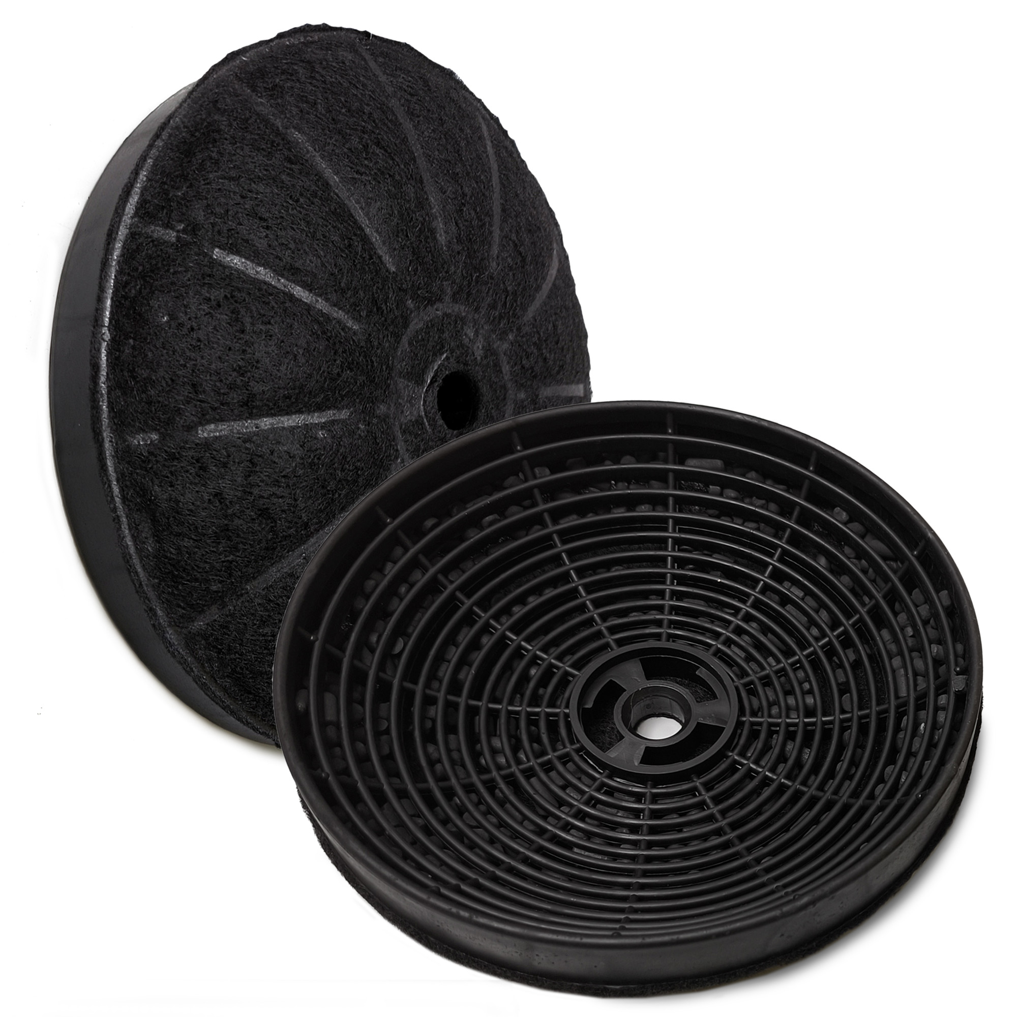 Diese 2 runden schwarzen Aktivkohlefilter sind meist in Dunsthauben wie Kaminhauben mit Umluftbetrieb eingebaut