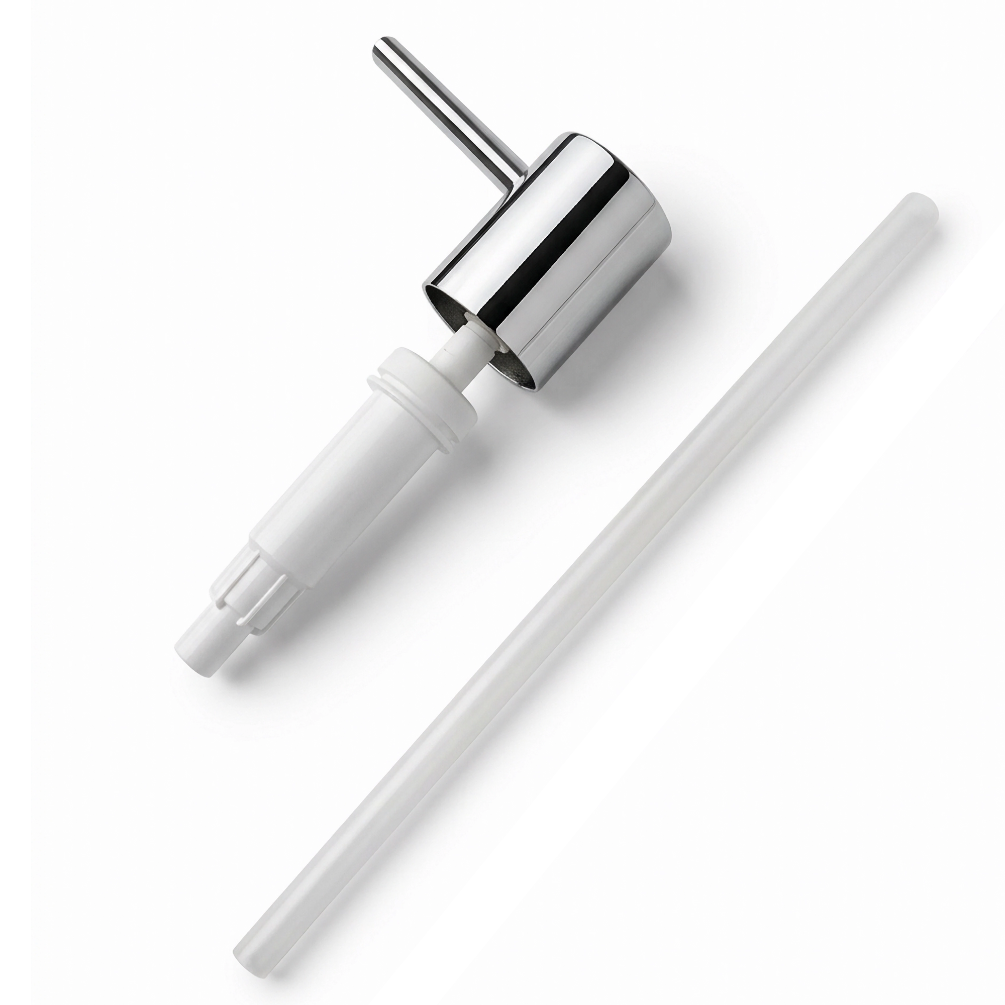 Dieses komplette Oberteil ist für den Spülmittelspender mit Hahnlochbohrung Durchmesser 35 mm für 300 ml Inhalt.