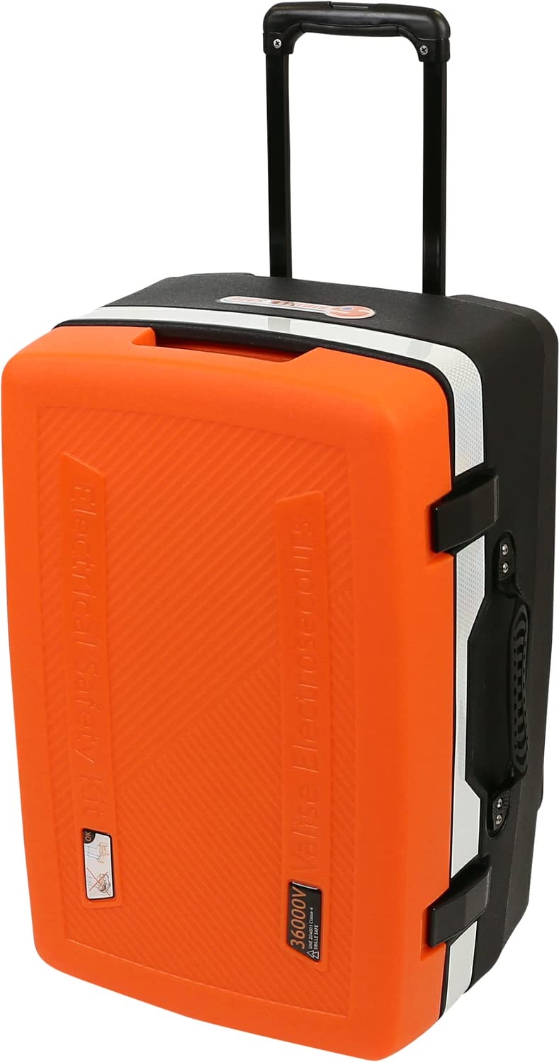 Das KS Tools mobile Rettungsset 117.0027 ist für Rettungseinsätze an elektrischen Anlagen bis maximal 36 kV ausgelegt. Die mobile Ausführung ermöglicht einen schnellen Zugriff auf die Ausrüstung im Einsatzfall. Durch die Rollen lässt sich das Set komfortabel transportieren und flexibel am Einsatzort positionieren. Standfüße sorgen für einen sicheren Stand bei der Nutzung. Ein Fahrgriff mit Teleskopauszug unterstützt die ergonomische Handhabung beim Ziehen und Rangieren. Das Set ist für den Innen- und Außenbereich geeignet und unterstützt eine strukturierte Bereitstellung der Rettungsmittel. Die kompakte Bauweise erleichtert die Aufbewahrung in Werkstatt, Betrieb oder Einsatzfahrzeug. Das Set ist als 10-teiliges Rettungsset konzipiert und eignet sich für professionelle Anwendungen im Bereich Arbeitssicherheit und Notfallorganisation. Ideal für Betriebe, die eine mobile Lösung zur schnellen Verfügbarkeit von Rettungsausrüstung benötigen.