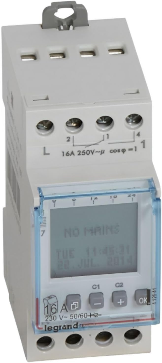 Die Legrand AlphaRex³ D22 ist eine digitale Wochenzeitschaltuhr für die zuverlässige zeitgesteuerte Schaltung elektrischer Verbraucher. Sie arbeitet mit 230 V und bietet zwei getrennt schaltbare Kanäle für flexible Anwendungen. Insgesamt stehen 56 Speicherplätze für Schaltprogramme zur Verfügung. Die Wochenprogrammierung ermöglicht wiederkehrende Schaltzeiten über die Wochentage hinweg. Eine automatische Sommer Winterzeit Umstellung unterstützt eine korrekte Zeitführung im Jahresverlauf. Zusätzlich ist ein Ferienprogramm vorhanden, um abweichende Schaltzeiten für Urlaubszeiträume zu realisieren. Ein integrierter Betriebsstundenzähler hilft bei der Überwachung von Laufzeiten und Wartungsintervallen. Die digitale Ausführung sorgt für präzise Schaltzeiten und eine übersichtliche Bedienung. Geeignet für den Einsatz in der Gebäudeinstallation, zum Beispiel für Beleuchtung, Lüftung oder andere zeitabhängige Verbraucher. Artikelnummer 412641, EAN 3245064126410.
