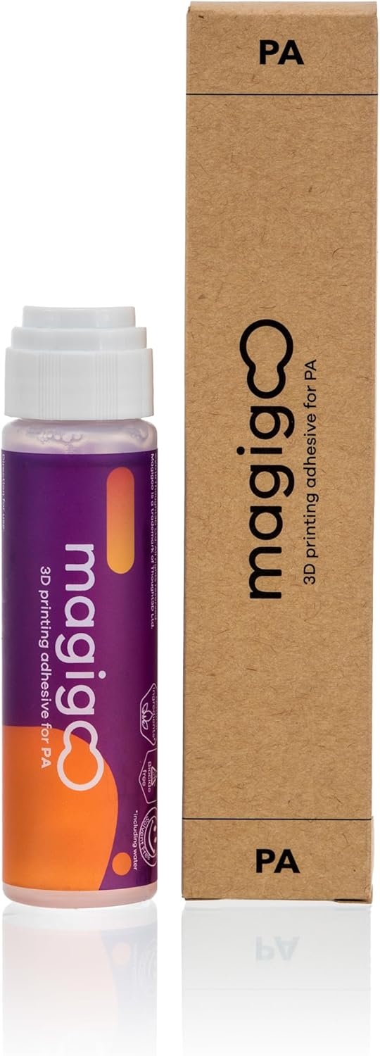 Magigoo PA ist ein Haftmittel für 3D-Drucker, das speziell für Polyamid Filamente wie Nylon entwickelt wurde. Die Formulierung unterstützt eine zuverlässige Haftung der ersten Schichten auf dem Druckbett und hilft, Verzug und Ablösungen während des Drucks zu reduzieren. Nach dem Abkühlen der Bauplatte lässt sich das gedruckte Teil in der Regel leichter lösen. Die Anwendung erfolgt gezielt nur im aktiven Druckbereich, wodurch der Verbrauch gering bleibt. Die wasserbasierte Reinigung ermöglicht das Entfernen von Rückständen ohne aggressive Reinigungsmittel. Geeignet für den professionellen Einsatz bei anspruchsvollen Nylon Drucken. Kompatibel mit gängigen Druckbettoberflächen, sofern diese für Klebestifte und Haftmittel ausgelegt sind. Praktischer Applikator erleichtert gleichmäßiges Auftragen. Unterstützt saubere Druckergebnisse bei größeren oder flächigen Bauteilen. Ideal für Anwender, die wiederholbare Haftung und einfache Nacharbeit wünschen.