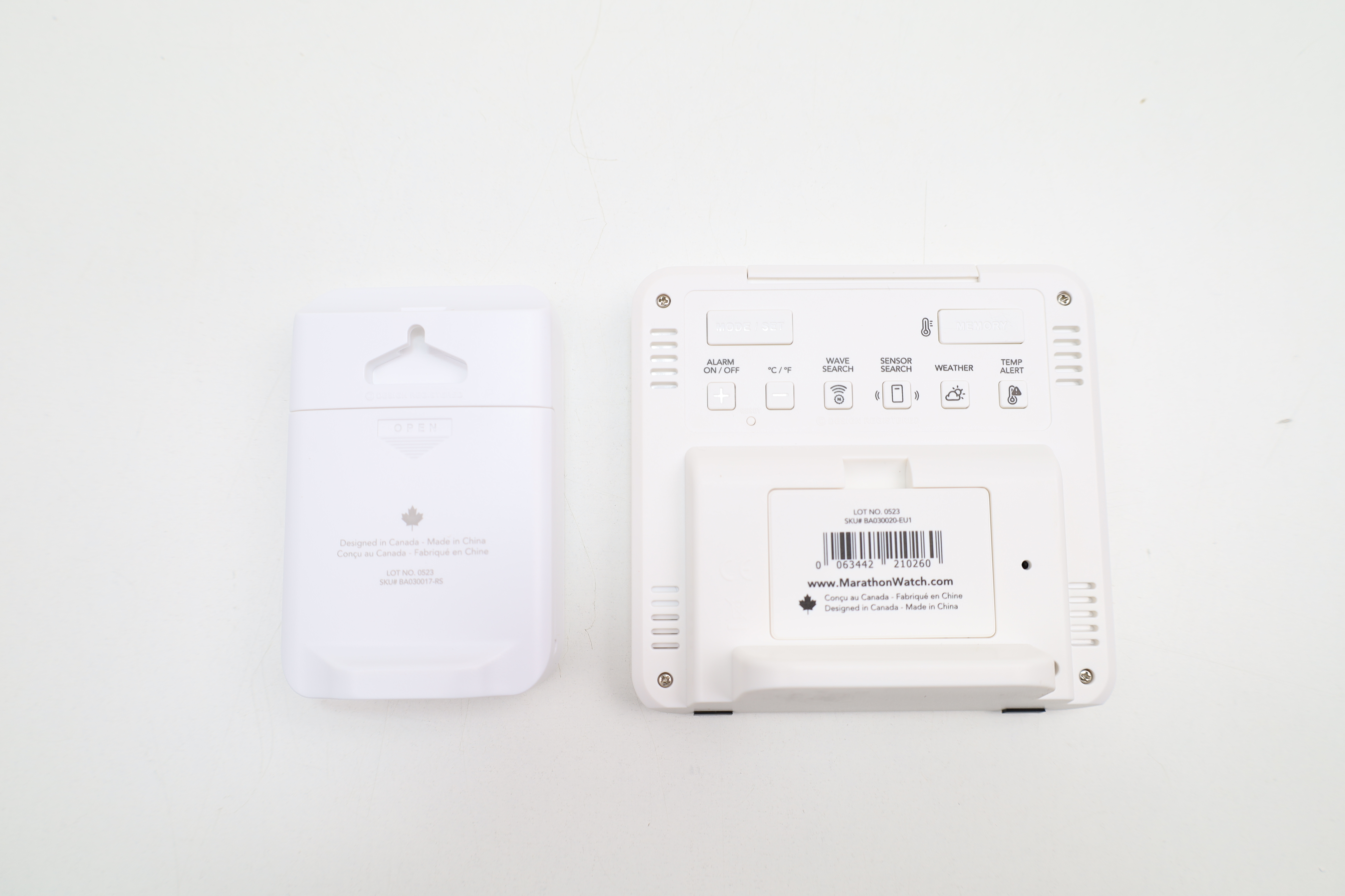 Die Marathon Atom Funkwetterstation kombiniert Wetteranzeige und Digitaluhr in einem übersichtlichen Schwarz Weiß Display. Fünf Wetteranimationen zeigen die aktuelle Wetterlage anschaulich. Die Station misst Innenwerte für Temperatur und Luftfeuchtigkeit und kann zusätzlich Außenwerte über einen Funksensor erfassen. Eine 24 Stunden Historie mit Minimal und Maximalwerten unterstützt die Nachverfolgung von Veränderungen. Die Uhr stellt sich per Funksignal automatisch ein und sorgt für eine genaue Zeitdarstellung. Dank ausklappbarem Ständer eignet sich das Gerät für die Aufstellung auf Tisch oder Regal. Für die Wandmontage sind integrierte Aufhängemöglichkeiten vorhanden. Die Anzeige kann in mehreren Sprachen genutzt werden, darunter Deutsch. Geeignet für Wohnräume, Büro, Schlafzimmer oder Küche zur schnellen Kontrolle von Raumklima und Wettertrend.