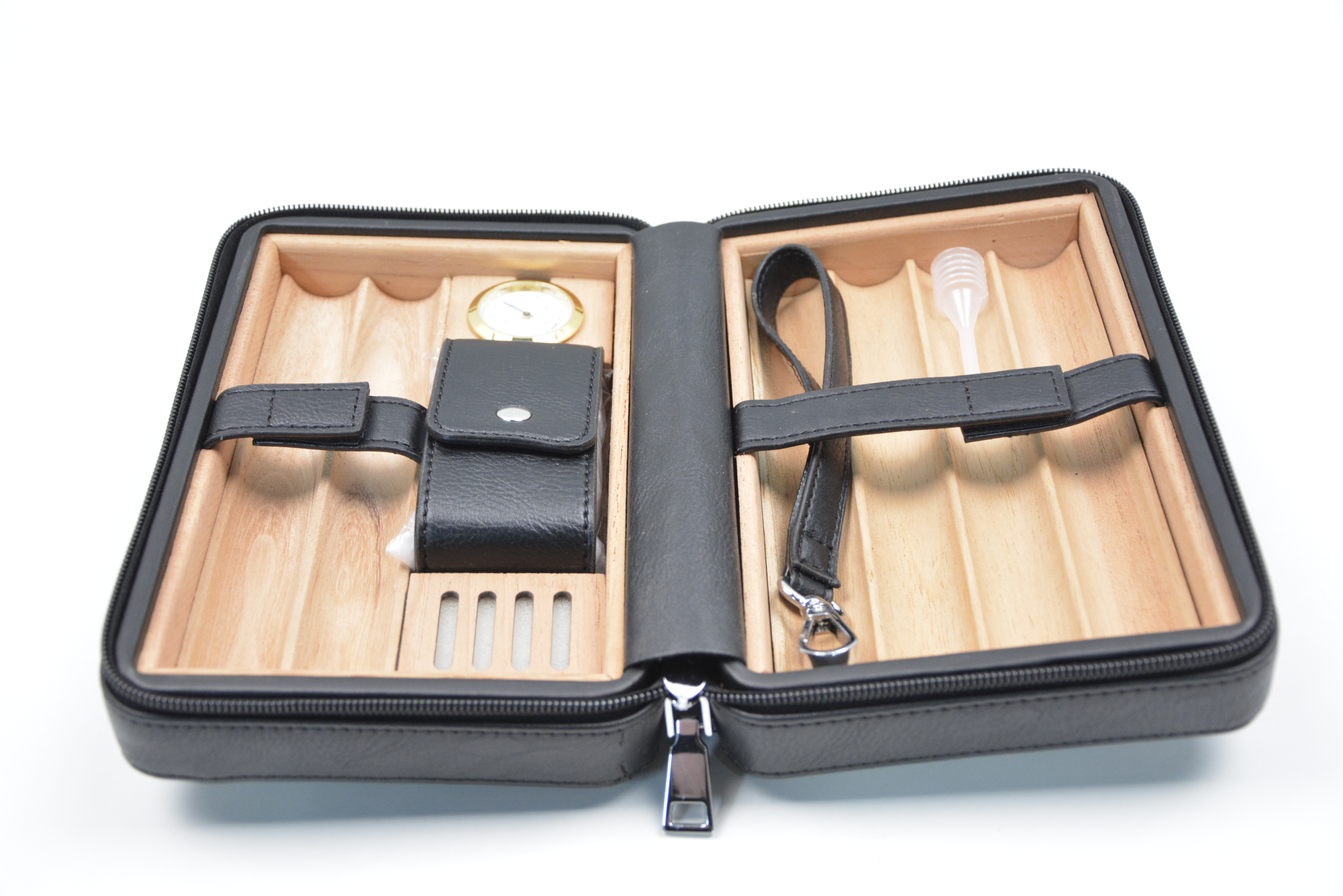 – ✅ Tragbarer Reise Zigarrenhumidor aus Leder mit Zedernholz Innenauskleidung für bis zu 6 Zigarren inklusive Hygrometer, Befeuchter und Multifunktionsanzünder