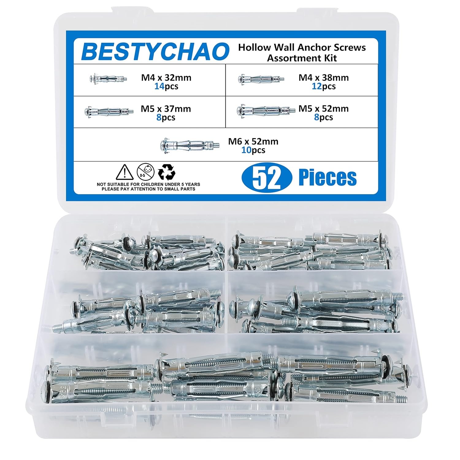 – ✅ 52 Metall Hohlraumdübel mit passenden Schrauben für sichere Befestigungen in Plattenbaustoffen