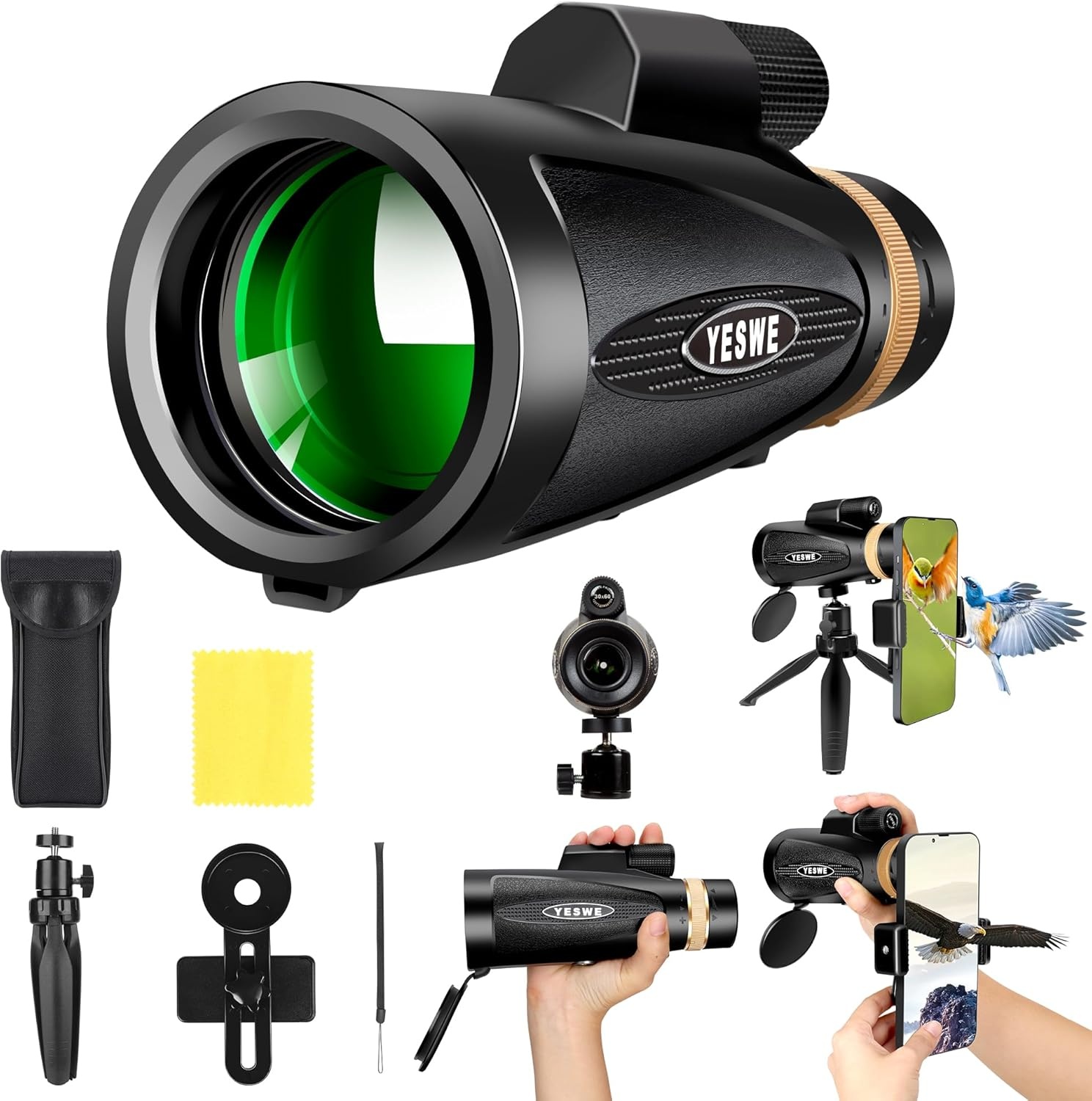 – ✅ Leistungsstarkes Monokular mit 30×60 Vergrößerung, Stativ und Smartphone Halterung für stabile Beobachtung und Aufnahmen