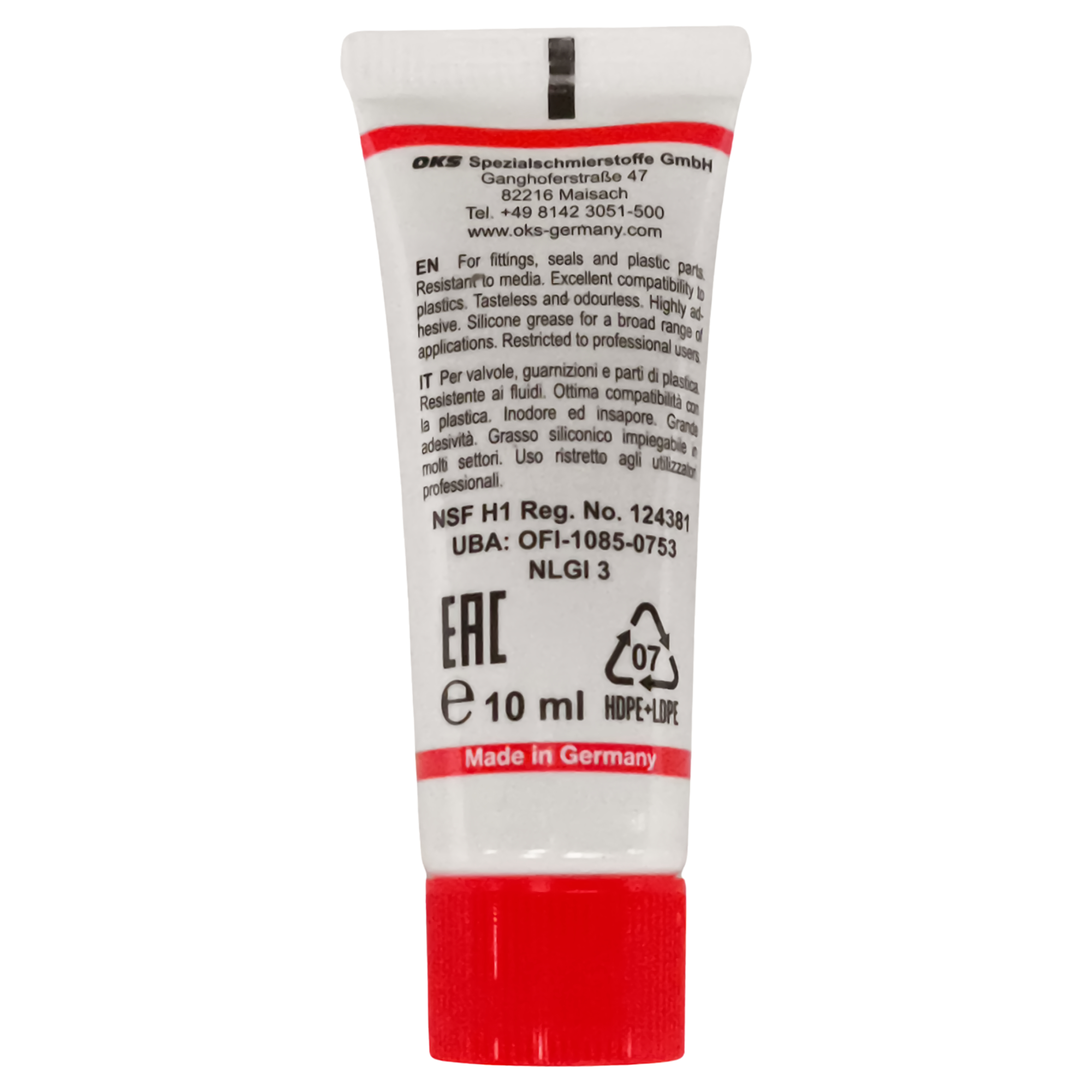 Es ist ideal für Espresso- und Kaffeeautomaten, beispielsweise zum Fetten der Brühgruppe und der Dichtungen. Es ist ein Schmierstoff für Sanitäranwendungen (Ventile, O-Ringe, Kunststoffe).