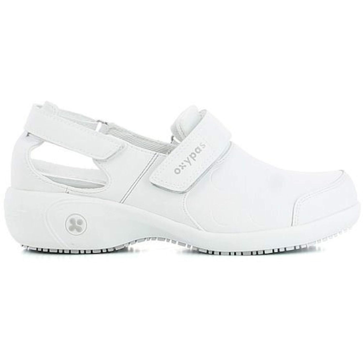 Der Oxypas Salma ist ein bequemer Sicherheitsclog für Damen und eignet sich besonders für den Arbeitsalltag in Krankenhaus, Pflege, Hotel und Gastronomie. Das Obermaterial aus Leder bietet ein angenehmes Tragegefühl und eine hochwertige Haptik. Die rutschfeste SRC-Sohle unterstützt sicheren Halt auf glatten Böden. Der 4 cm Absatz sorgt für einen gepflegten, zugleich alltagstauglichen Auftritt. Die ultraleichte Bauweise entlastet die Füße bei langen Schichten. Als geschlossener Clog bietet der Schuh mehr Schutz als offene Varianten. Eine kleine Belüftung an der Ferse unterstützt ein angenehmes Fußklima. Die Passform ist auf komfortables Gehen und Stehen ausgelegt. Farbe weiss, Größe 36 EU.