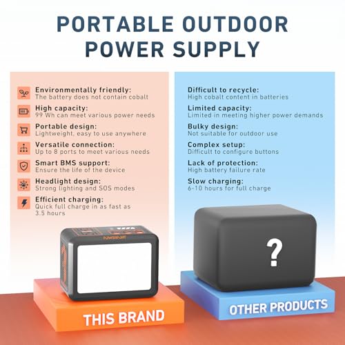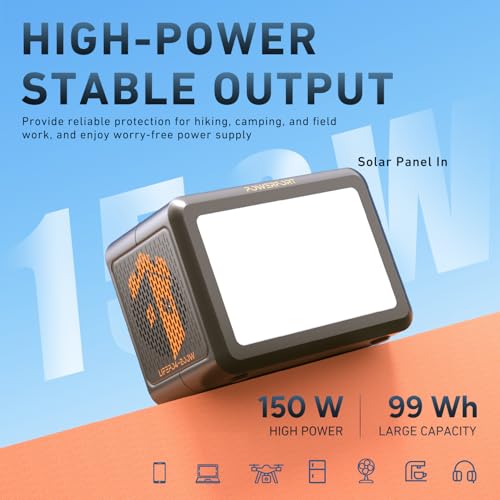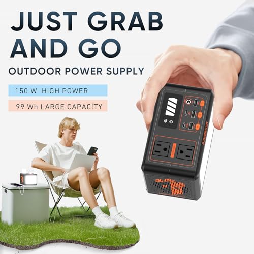 – ✅ Kompakte 99-Wh-Powerstation mit 150 W Ausgangsleistung für Camping, Notstrom und mobile Geräte
