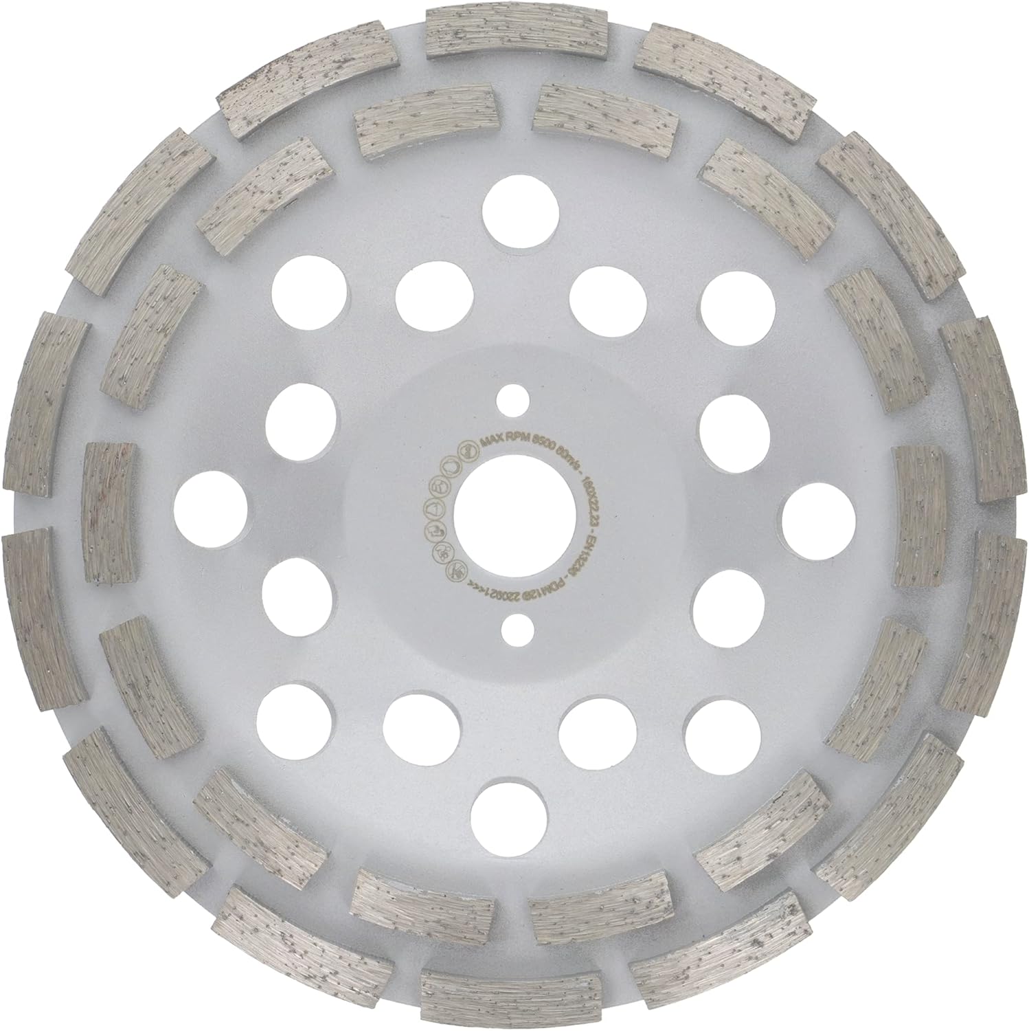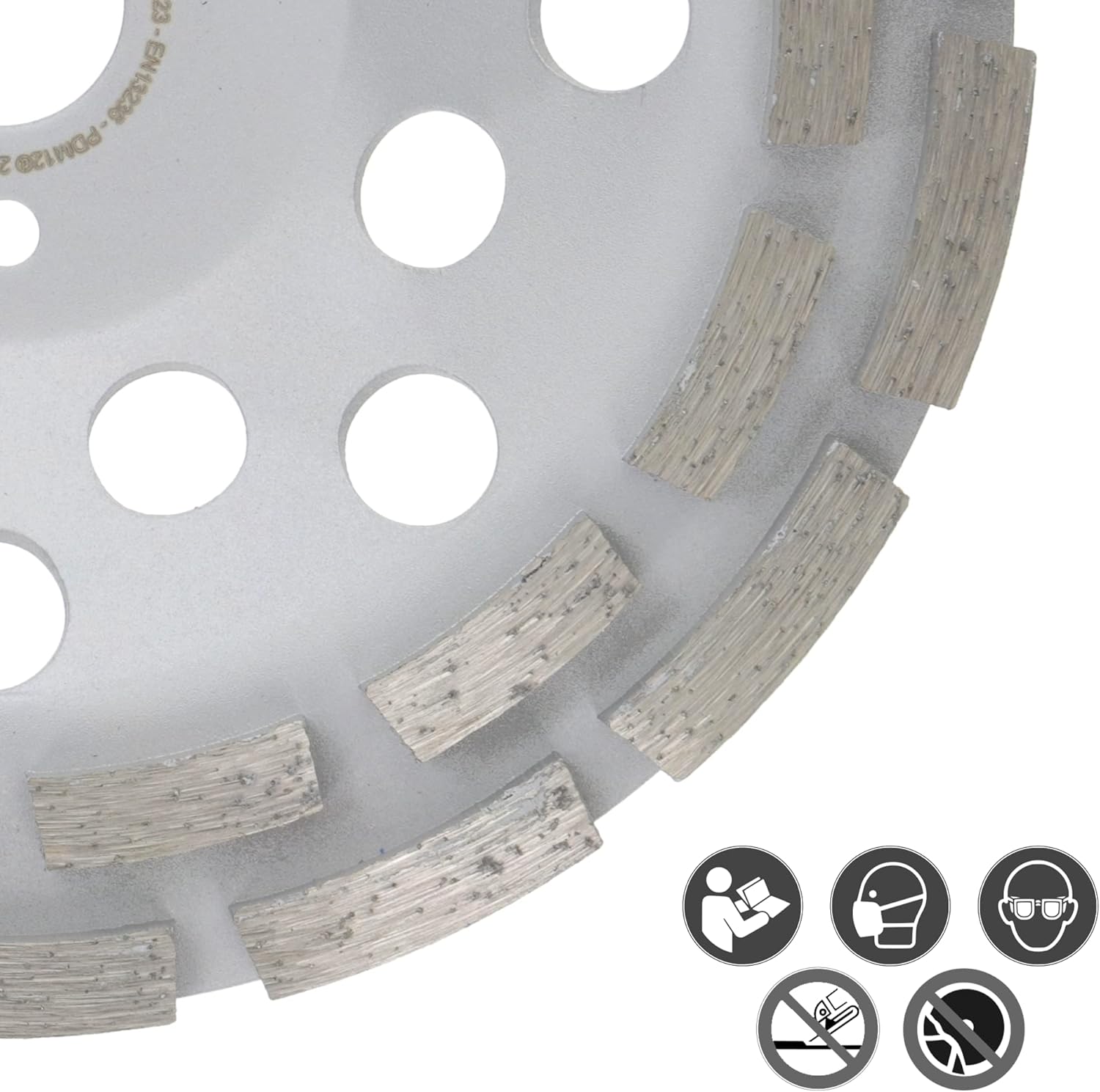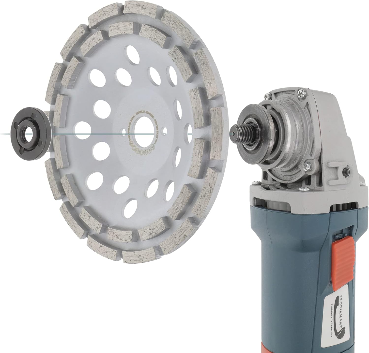 Der PRODIAMANT Diamant-Schleiftopf mit 180 mm Durchmesser ist für universelle Schleifarbeiten auf mineralischen Untergründen ausgelegt. Die doppelreihige Anordnung der Diamantsegmente unterstützt zügigen Materialabtrag bei gleichzeitig kontrolliertem Schliff. Mit einer Aufnahmebohrung von 22,23 mm ist die Scheibe für gängige Winkelschleifer und Betonschleifer geeignet. Große Absauglöcher fördern eine effiziente Staubabführung bei Verwendung einer passenden Absaugung. Die Segmenthöhe beträgt 5 mm, die Bauhöhe 26 mm. Geeignet für Beton, Betonprodukte, Estrich, Mauerwerk und Naturstein. Die Bindung ist auf wechselnde Materialien abgestimmt und damit ideal, wenn häufig unterschiedliche Oberflächen bearbeitet werden. Das Werkzeug ist nach EN13236 geprüft und auf hohe Standzeit ausgelegt. Bitte die Bauhöhe sowie die Vorgaben des Maschinenherstellers beachten.