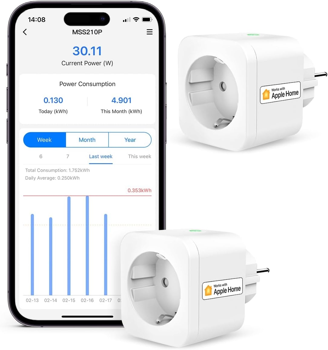 Die Refoss Smart Steckdosen ermöglichen das komfortable Schalten und Überwachen von angeschlossenen Geräten per App. Eine integrierte Verbrauchsmessung zeigt den Stromverbrauch in Echtzeit sowie als Verlauf nach Tag, Woche, Monat und Jahr an. Nach Eingabe Ihres Strompreises pro Kilowattstunde kann die App die geschätzten Kosten berechnen. Die Steckdosen unterstützen Zeitpläne und Timer, um Geräte automatisch ein und auszuschalten. Eine Fernsteuerung ist auch unterwegs über die App möglich. Die Einbindung in Apple HomeKit ist möglich und erlaubt die Steuerung im Smart Home. Zusätzlich wird die Sprachsteuerung über Alexa und Google unterstützt. Die Steckdosen können auch zur Überwachung der Energieerzeugung eines Balkonkraftwerks genutzt werden. Das Set besteht aus zwei smarten Steckdosen und eignet sich für viele Haushaltsgeräte und Verbraucher.