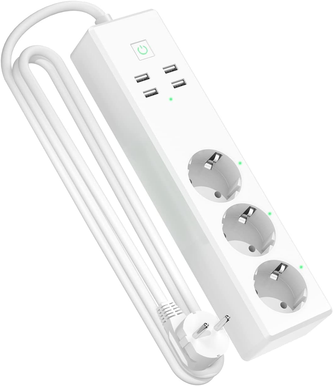 – ✅ Smarte Steckdosenleiste mit 3 separat schaltbaren Steckdosen, 4 USB-Anschlüssen und Überspannungsschutz