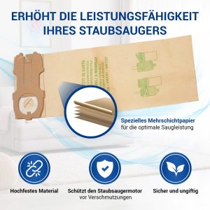 Im Set sind 10 Filterbeutel für den Staubsauger enthalten. Das wird Ihnen zusätzliche Zeit und Kosten sparen. Sie müssen nicht jedesmal neue Staubsauger-Filterbeutel nachkaufen.
