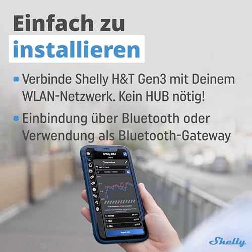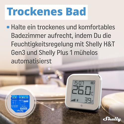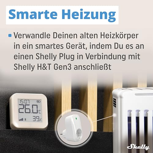 Der Shelly H und T Gen3 in Elfenbein ist ein smarter WLAN Temperatur und Feuchtigkeitssensor zur kontinuierlichen Überwachung des Raumklimas. Er verbindet sich direkt mit dem 2,4 GHz WLAN und benötigt keinen separaten Hub. Die Messwerte werden übersichtlich auf einem stromsparenden E Paper Display angezeigt, zusätzlich ist eine Uhr integriert. Für die Stromversorgung stehen zwei Optionen zur Wahl, Betrieb mit vier AA Batterien oder Dauerbetrieb über USB C. Der Sensor eignet sich für Benachrichtigungen bei Grenzwerten und für die Einbindung in Automationen und Szenen. Dank Bluetooth gelingt die Ersteinrichtung besonders komfortabel. Ein integrierter Webserver ermöglicht die lokale Bedienung im Netzwerk. Der Gen3 Shelly Chip mit 8 MB Speicher sorgt für schnelle Reaktionszeiten und unterstützt die Speicherung von Messdaten. Die Montage ist auch an der Wand möglich. Kompatibel mit Sprachassistenten wie Alexa und Google Home sowie mit der Shelly Smart Control App.
