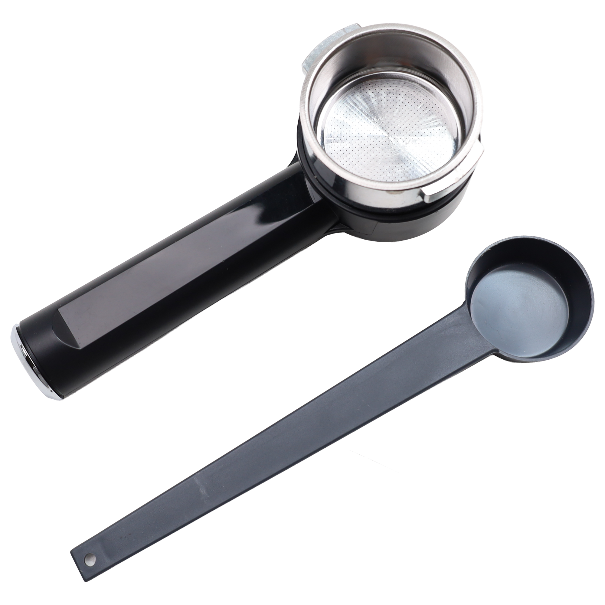 Der Siebträger ist mit einer geraden Siebaufnahme ausgestattet.