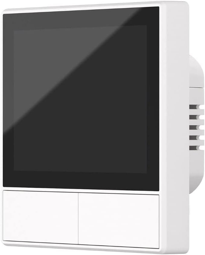 Merkmale und Funktionen: 3,5 Zoll kapazitives TFT-Touchpanel für komfortable Bedienung. Auflösung 480 x 320 Pixel für klare Darstellung. Zwei physische Tasten für schnelle Direktbedienung. Zwei integrierte WLAN-Schalter zur Steuerung von zwei Stromkreisen bzw. Gruppen. Integrierter Temperatur- und Feuchtigkeitssensor zur Anzeige von Raumwerten und für temperaturbasierte Automationen. Geeignet für szenenbasierte Steuerung und Gerätegruppen innerhalb der App. WLAN-Standard IEEE 802.11 b/g/n im 2,4 GHz-Band. Bluetooth 4.2 BLE für unterstützte Kopplungs- und Einrichtungsfunktionen. Eingang 100 bis 240 V bei 50/60 Hz, maximal 4 A. Ausgang 100 bis 240 V bei 50/60 Hz, 2 A je Gruppe, 4 A gesamt. Maximale Last je nach Spannung bis 300 W je Kanal bei 220 V, bis 600 W gesamt bei 220 V. Kompatible App-Systeme Android und iOS. Gehäusematerial aus PC V0, CRS und gehärtetem Glas. EU-Abmessungen 86 x 86 x 41,7 mm für Standard-Unterputzdosen. Zertifizierungen CE und RoHS.