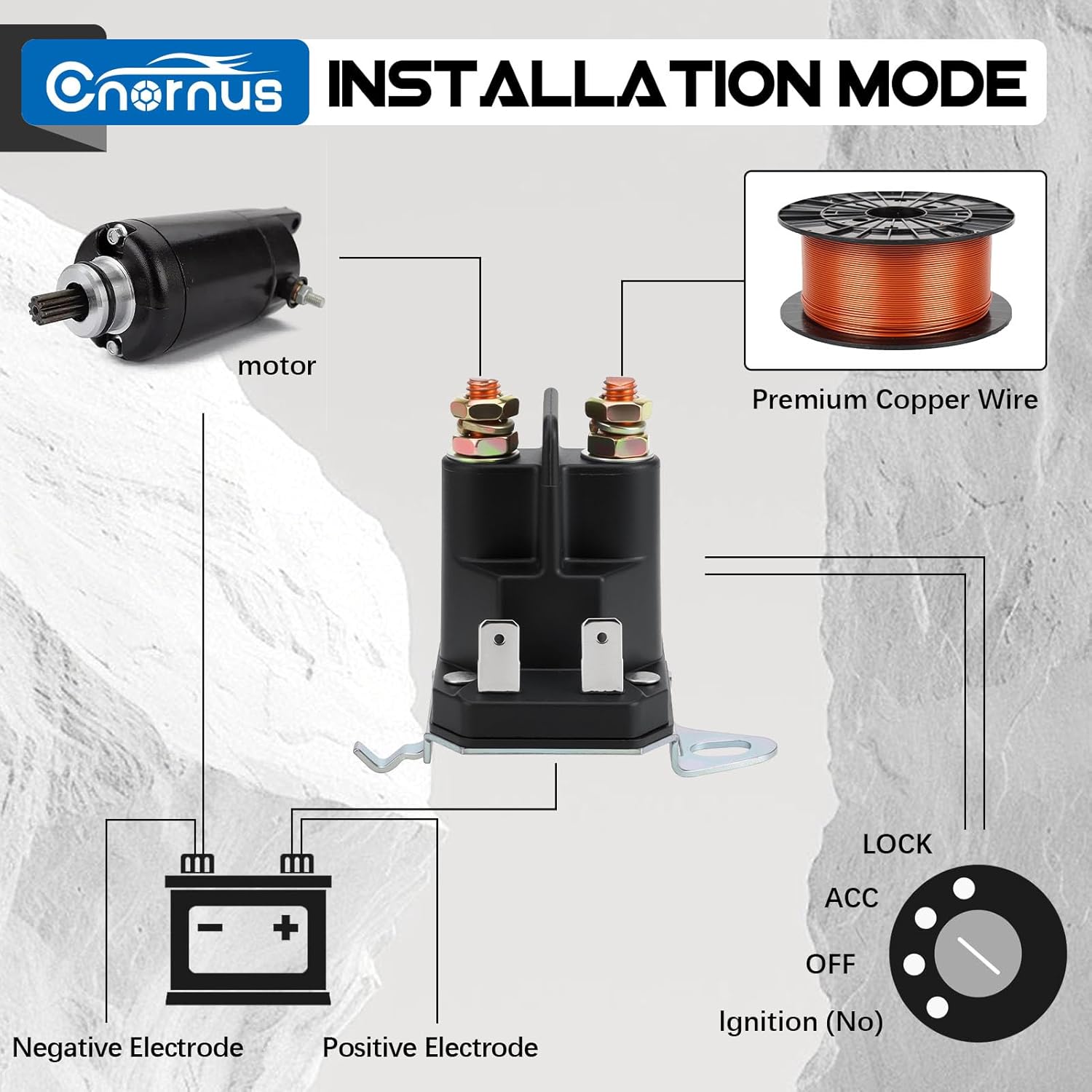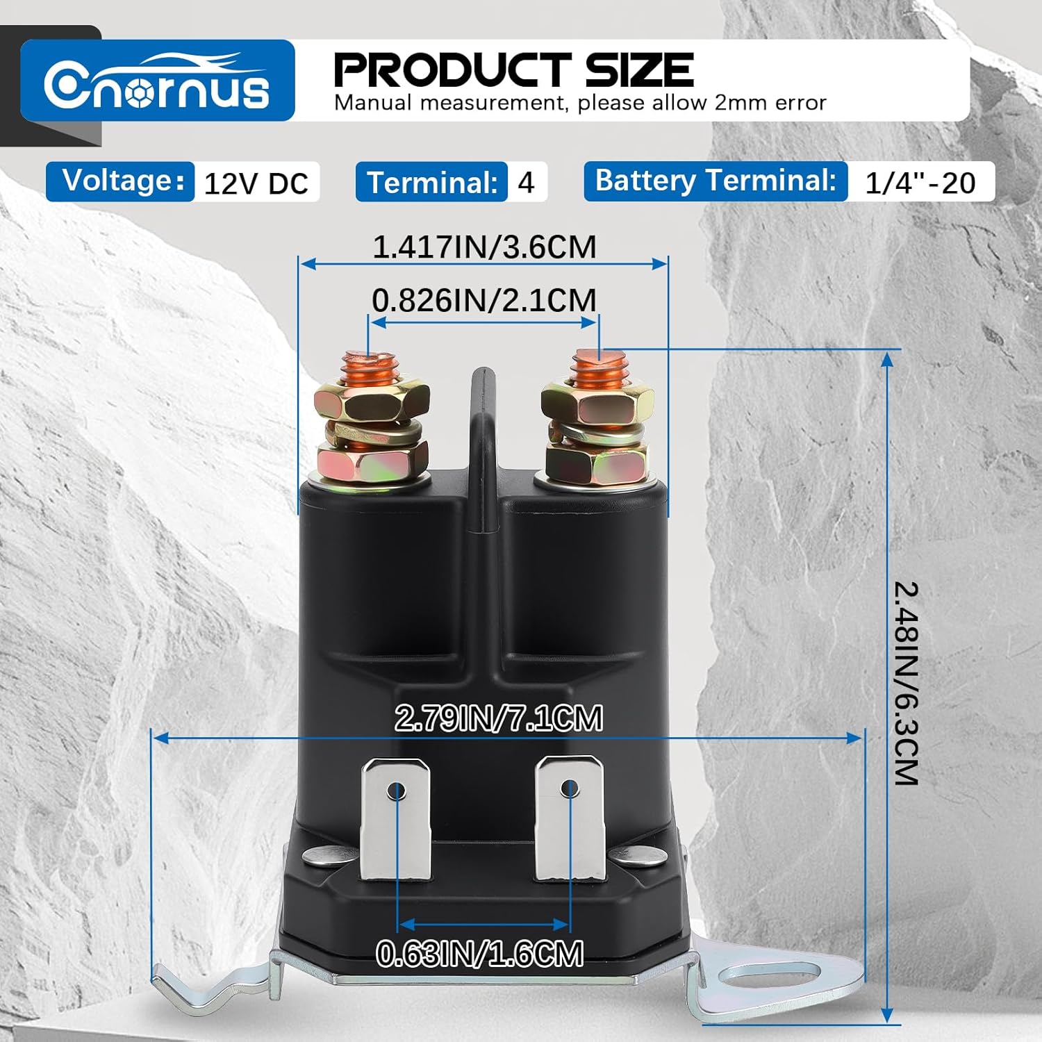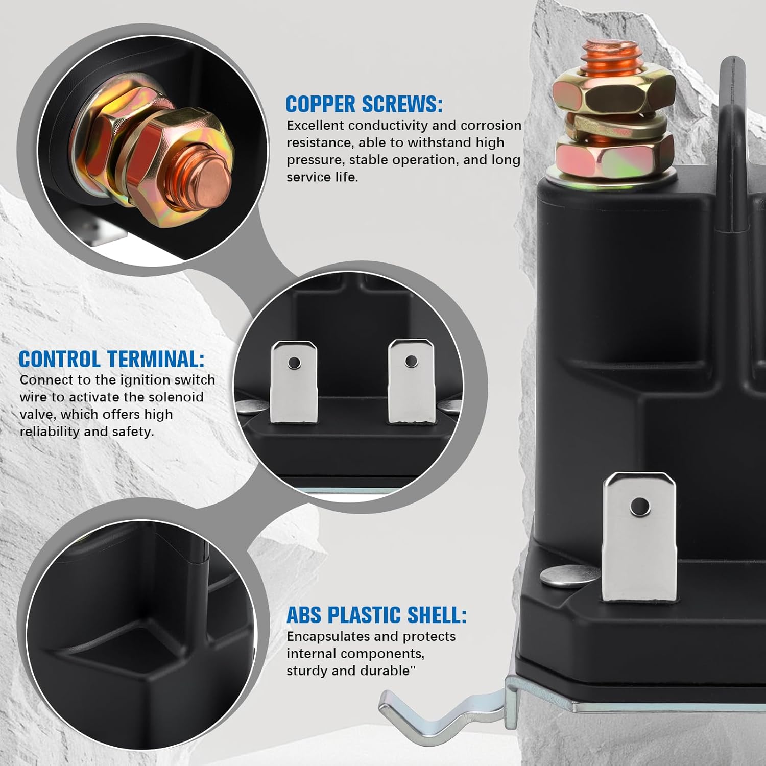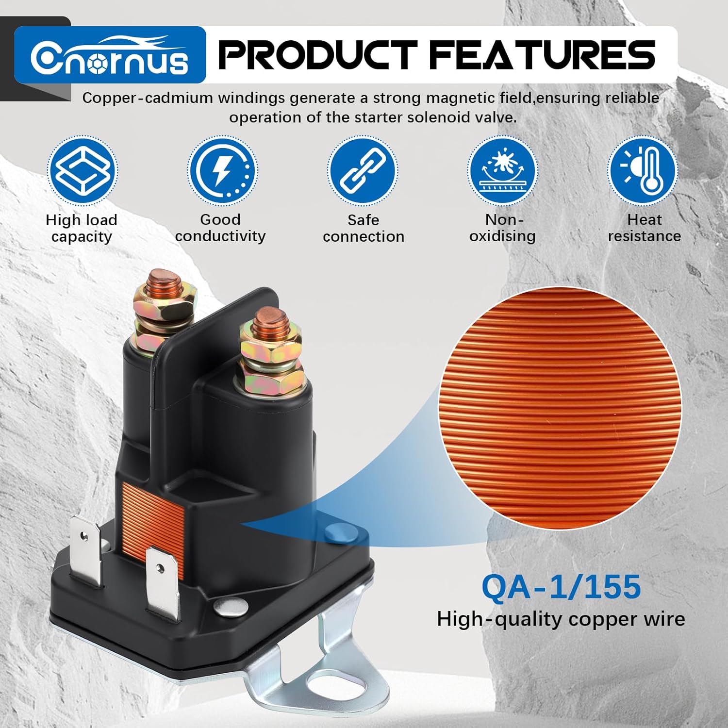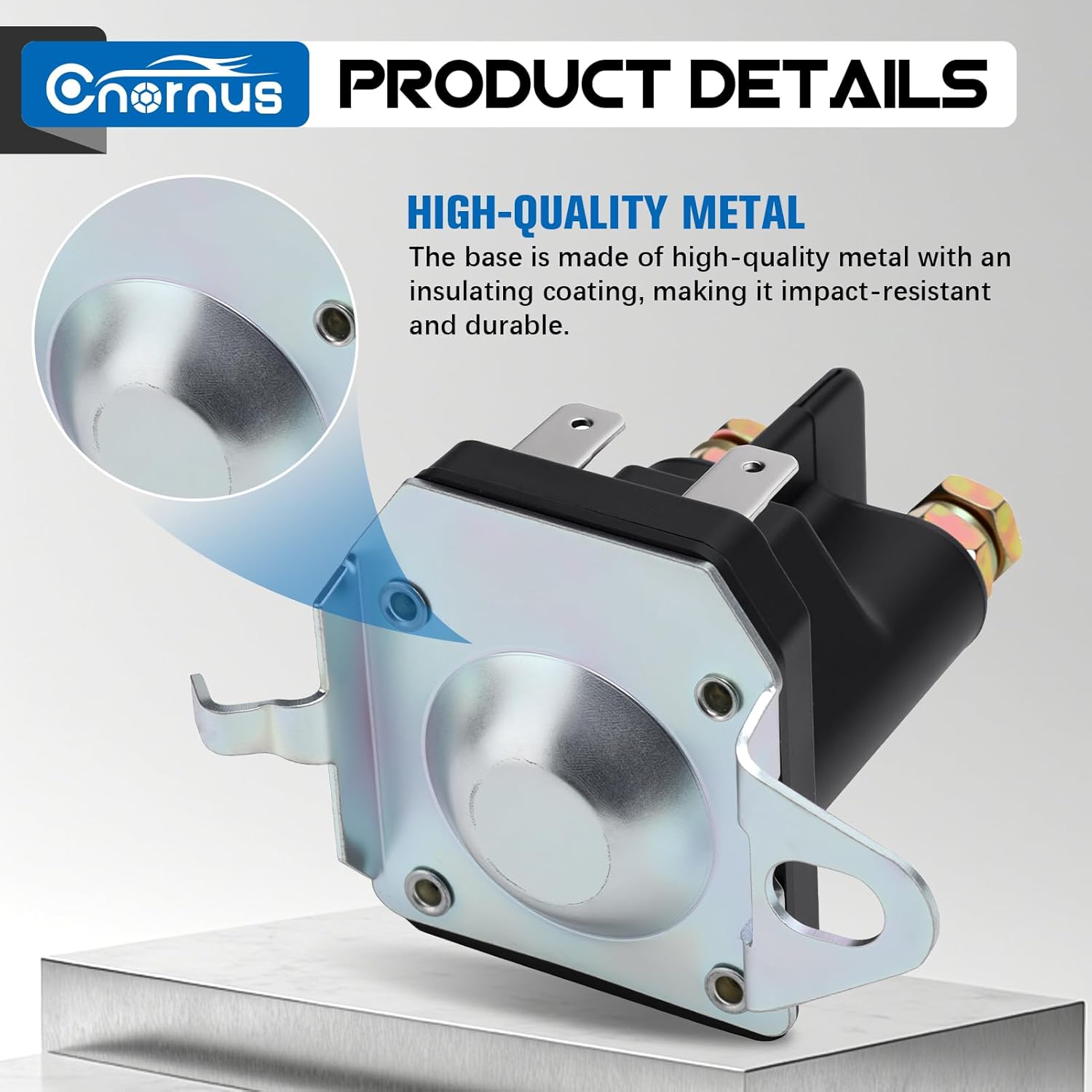 Dieses Starterrelais ist für 12 Volt Bordnetze ausgelegt und eignet sich als Magnetschalter zum Schalten des Anlassers. Es verfügt über 4 Anschlüsse für eine gängige Verdrahtung in vielen Anwendungen. Die Konstruktion mit Eisenkern und Kupferspule ist auf zuverlässige Schaltvorgänge ausgelegt. Korrosions- und oxidationsbeständige Ausführung unterstützt den Einsatz in anspruchsvollen Umgebungen. Unempfindlichkeit gegenüber Vibrationen begünstigt den Betrieb in Fahrzeugen und Arbeitsgeräten. Kompakte Bauform ermöglicht eine flexible Montage auch bei begrenztem Bauraum. Gute Wärmeableitung unterstützt stabile Arbeitsbedingungen bei wiederholten Startvorgängen. Geeignet für Anwendungen wie Rasenmäher, Schneemobile, Golfwagen, Geländefahrzeuge und Gartentraktoren. Abmessungen betragen 6,9 x 4,6 x 5 cm. Nettogewicht beträgt 300 g.
