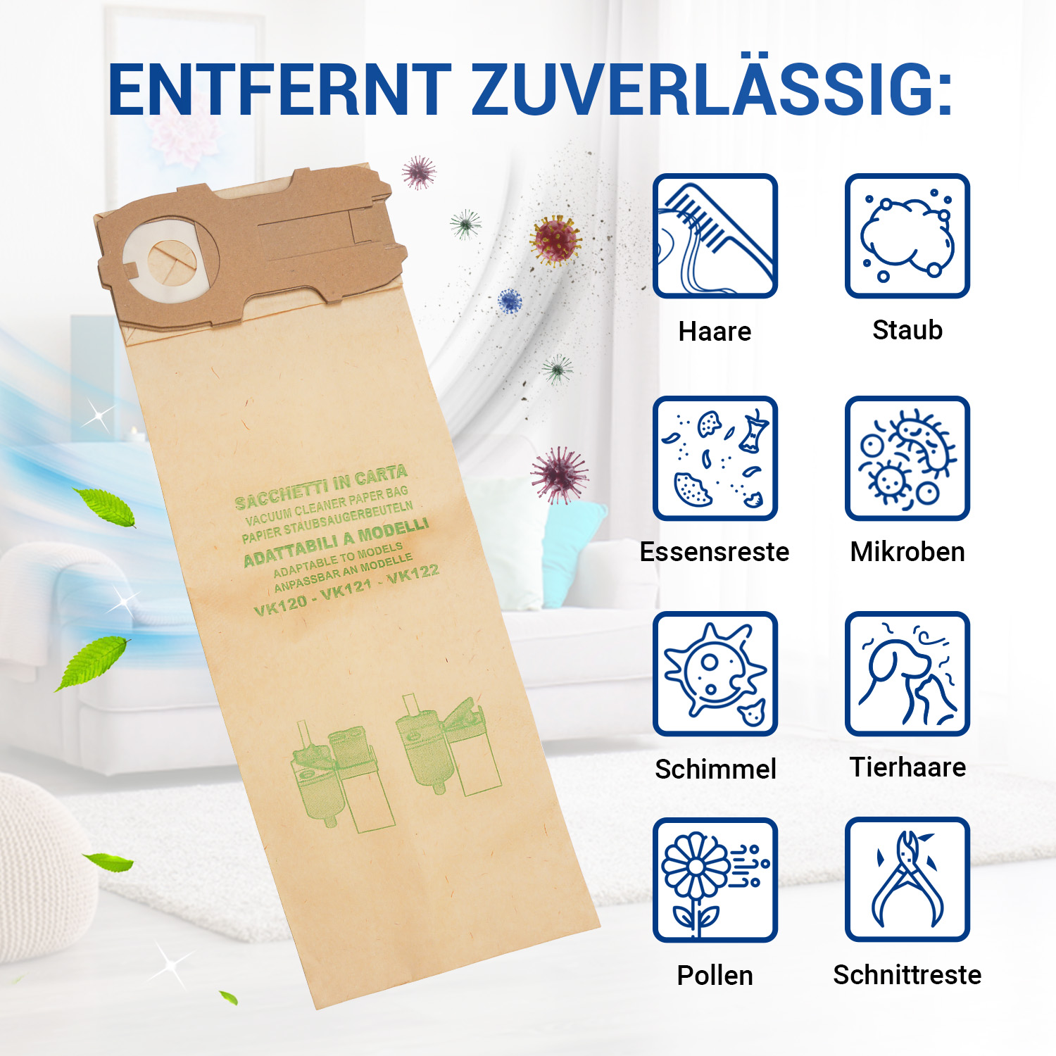 Filterbeutel kompatibel mit Vorwerk Kobold VK118, VK119, VK120, VK121, VK122